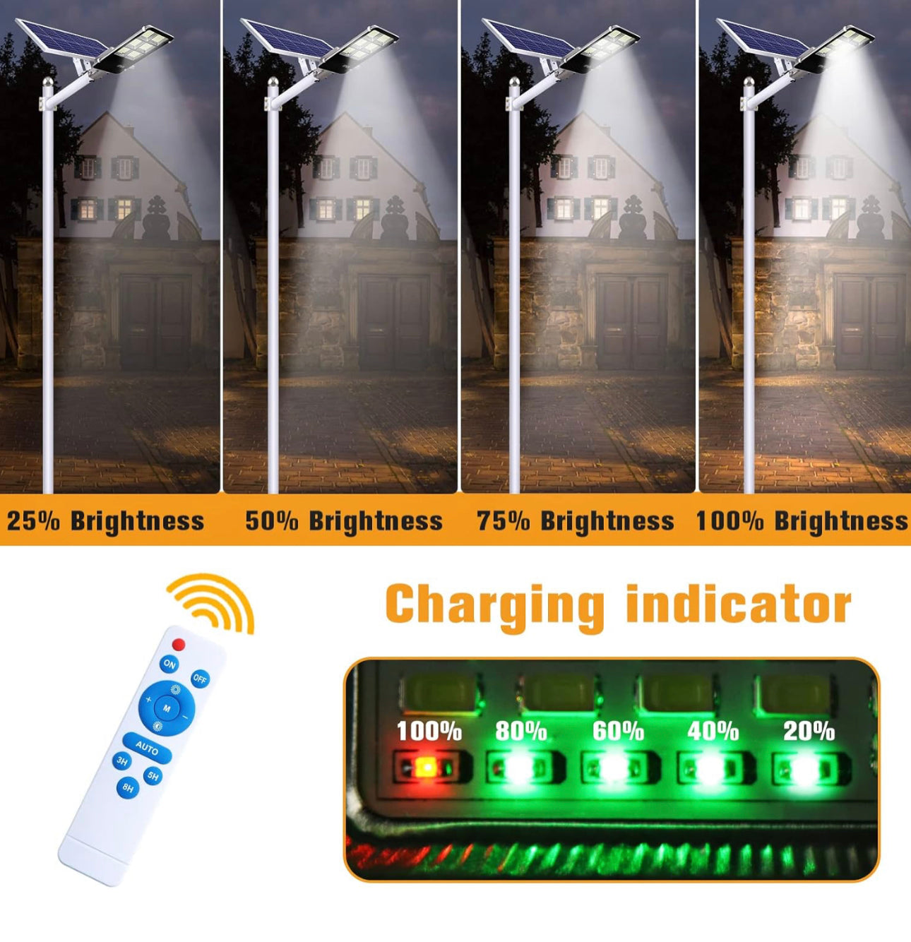 400W Solar Street Lights Outdoor, Dusk to Dawn Solar Led Outdoor Light with Remote Control, 6500K Daylight White