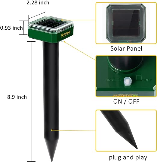 8 Pack Mole Repellent Solar Sonic Groundhog Repeller Gopher Deterrent Vole