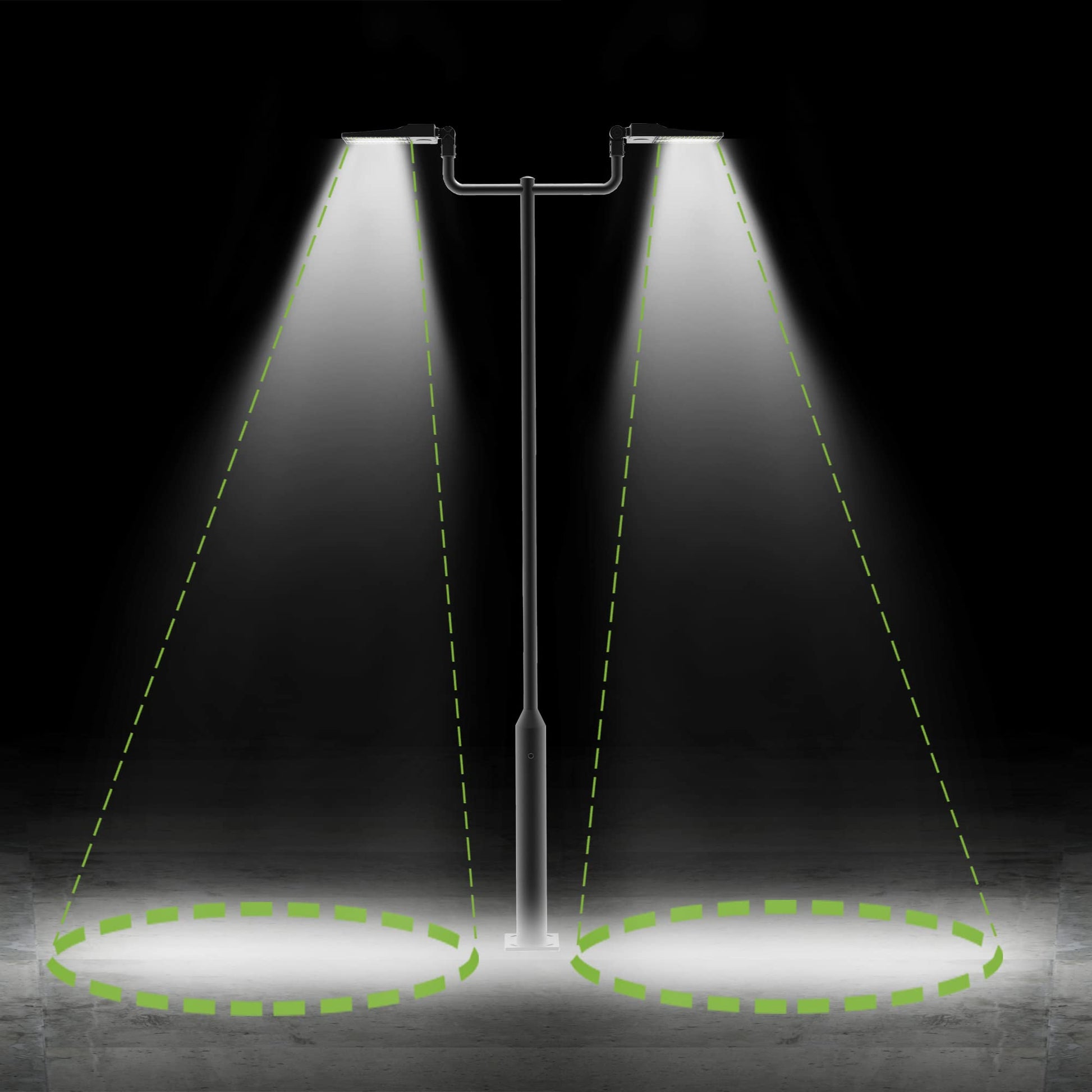 - 340° Large Wide Angle: Four-sided multi-array lighting design commercial street light. The range of illumination is three times larger than that of traditional solar street lights and twice as large as that of double-sided luminous ones. 2023 new upgrade with supersize lamp beads and optical lenses, 90% Brightness increase, 60% Range increase.