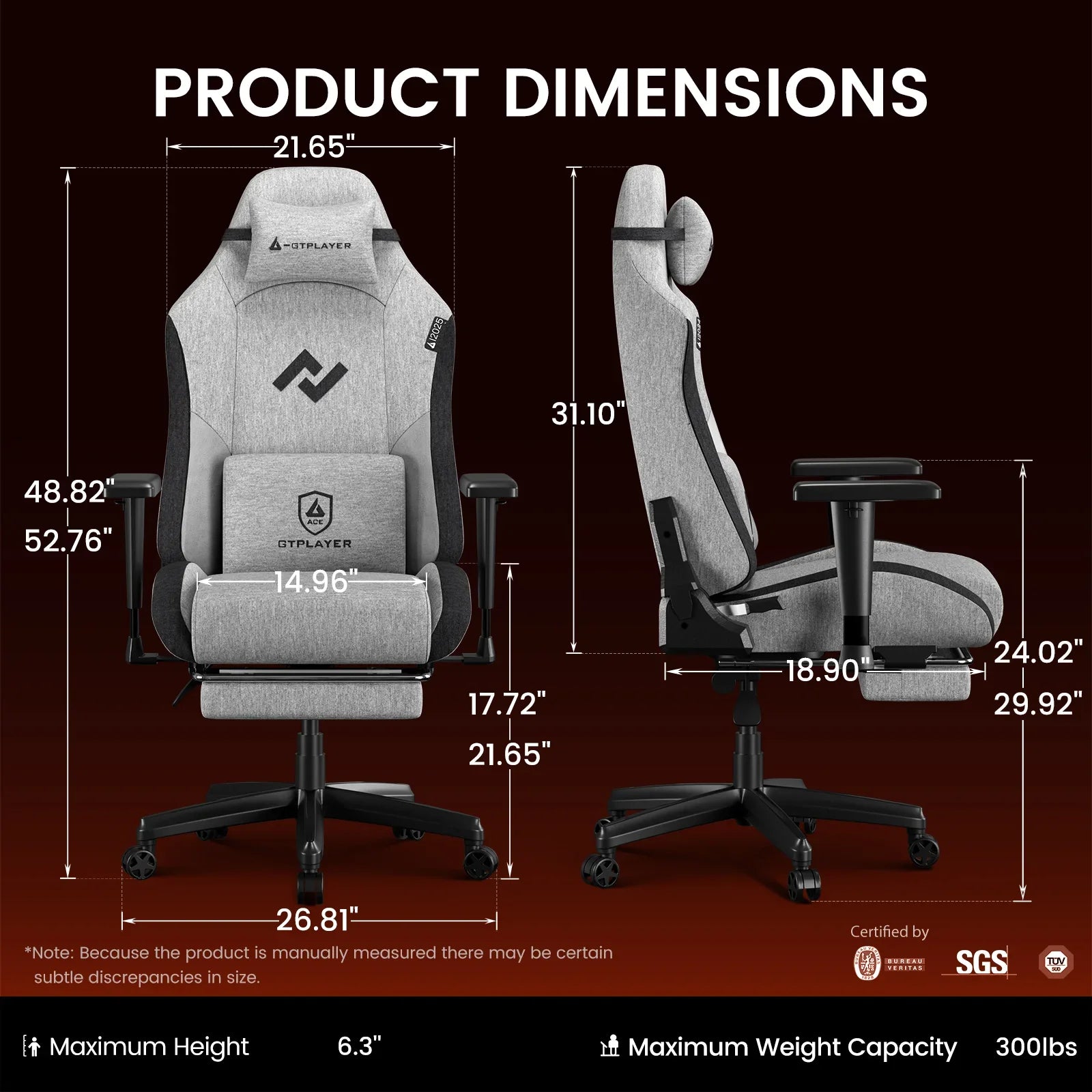 *Note: Because the product is manually measured there may be certain