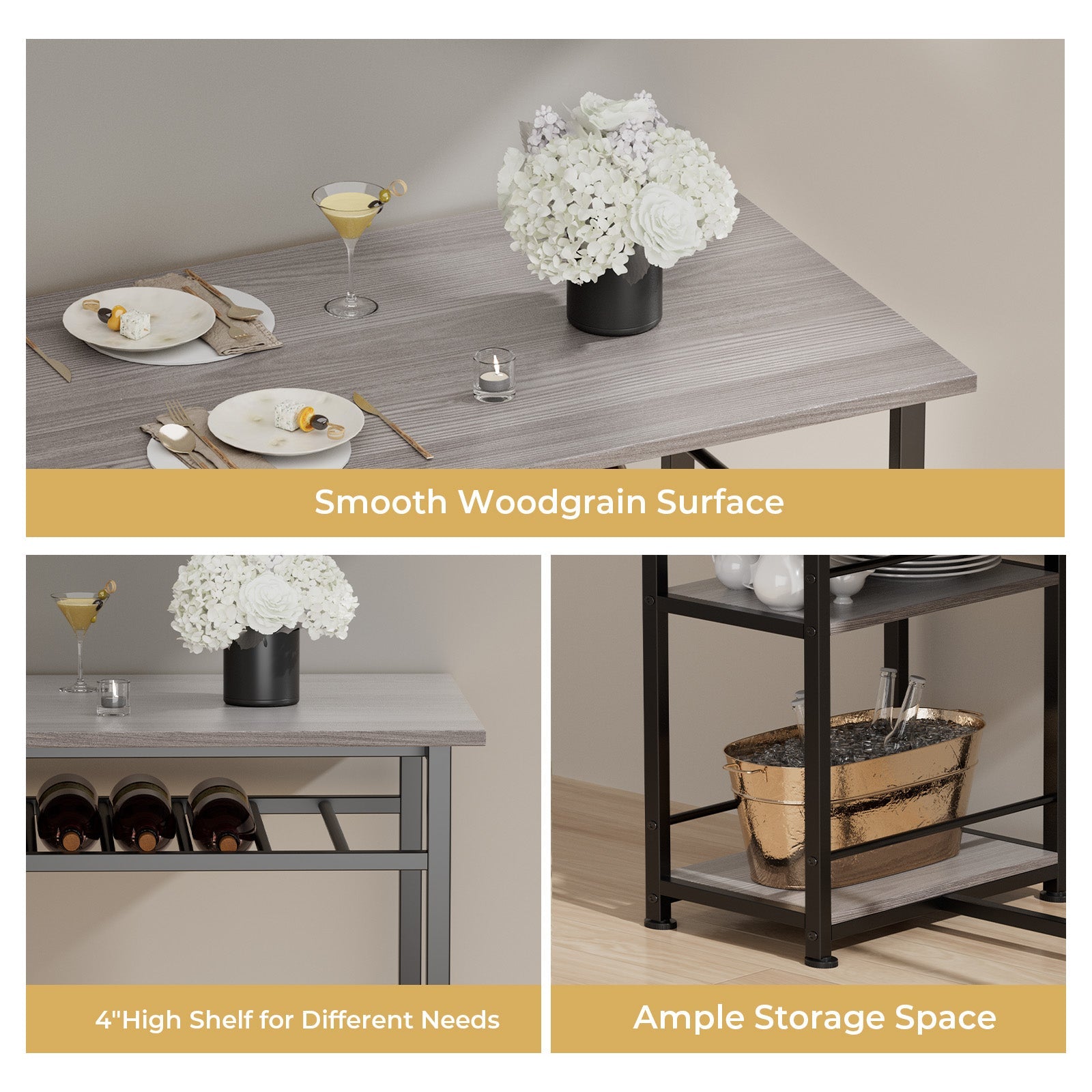- Multi-Functional Storage Space: The small dining table cleverly designed three-layer storage shelves on the side provide ample space for organizing your dining essentials—dishes, glasses, snacks, and condiments. This thoughtful addition helps you declutter your dining area, allowing for a more enjoyable dining experience.