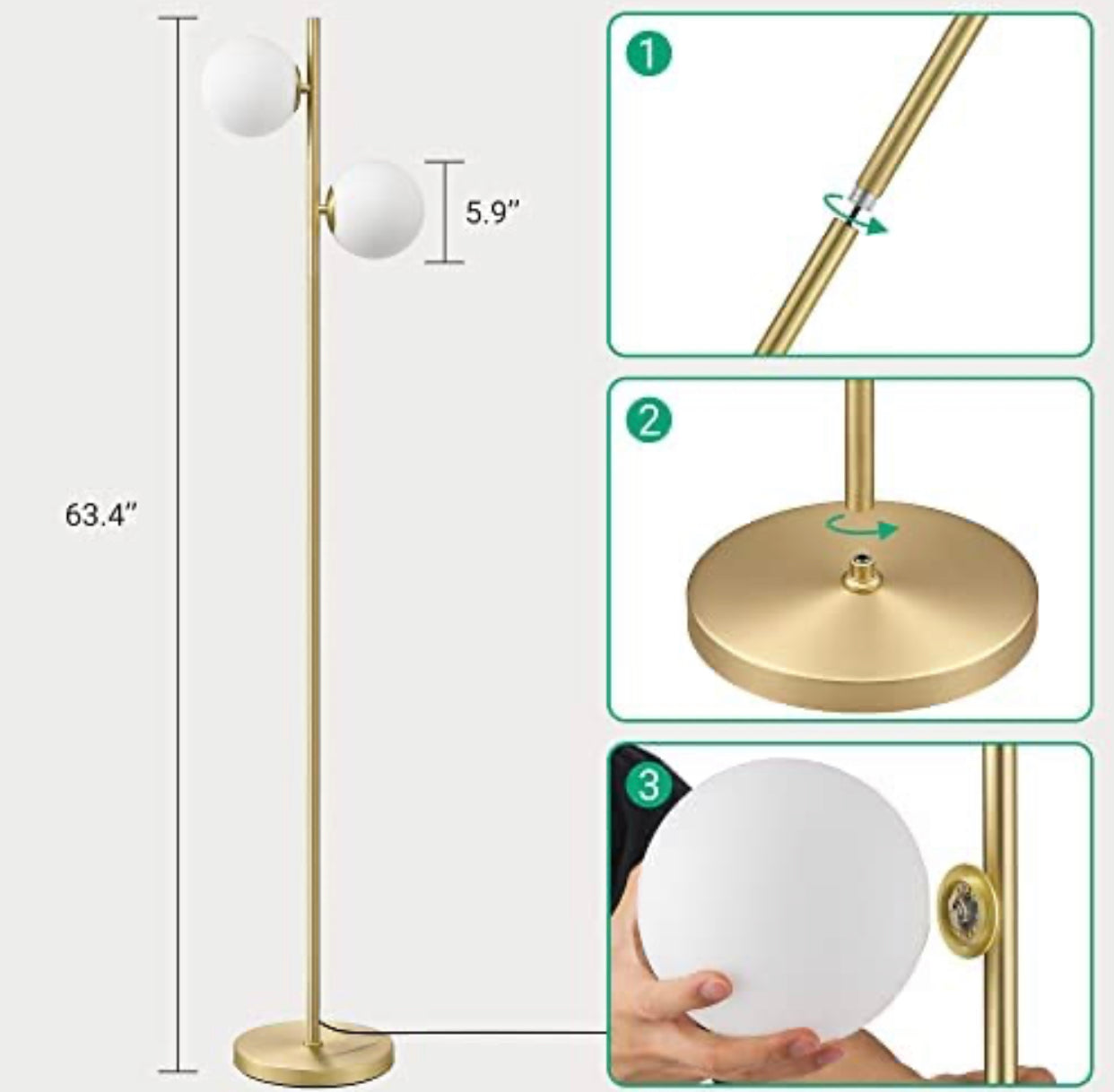 EDISHINE Modern Globe Floor Lamp, Dimmable Mid Century Floor Lamps