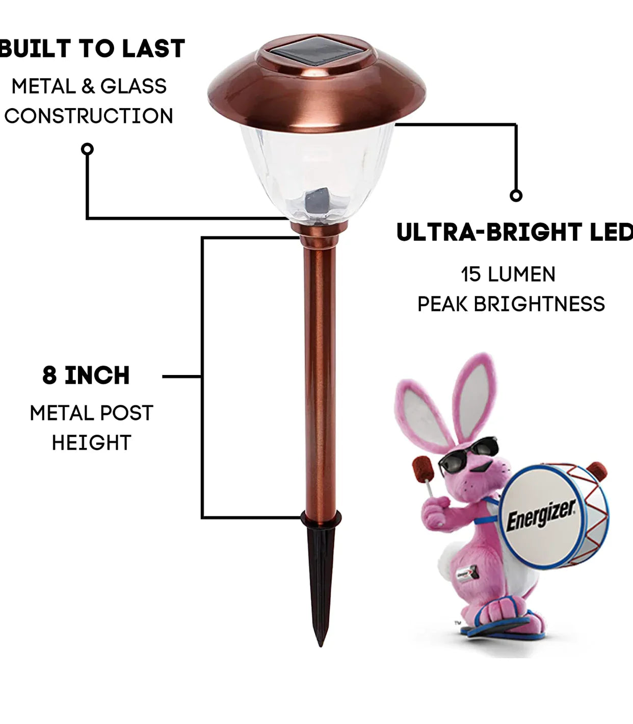 Brighten your landscape with this High Quality Energizer 10-piece solar light set--no wires required!Easy to assemble and set up, stake them wherever you see fit to give your gardens and walkways a warm, inviting look.