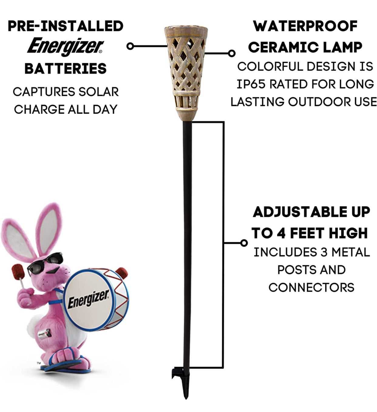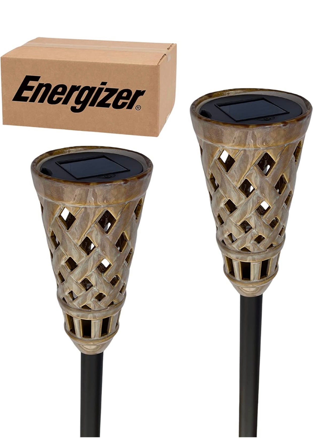 Energizer LED Ceramic Solar Tiki Torch Lights Dancing Lights Outdoor Waterproof 2 Pack