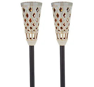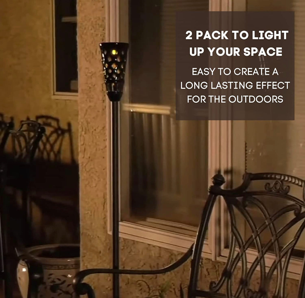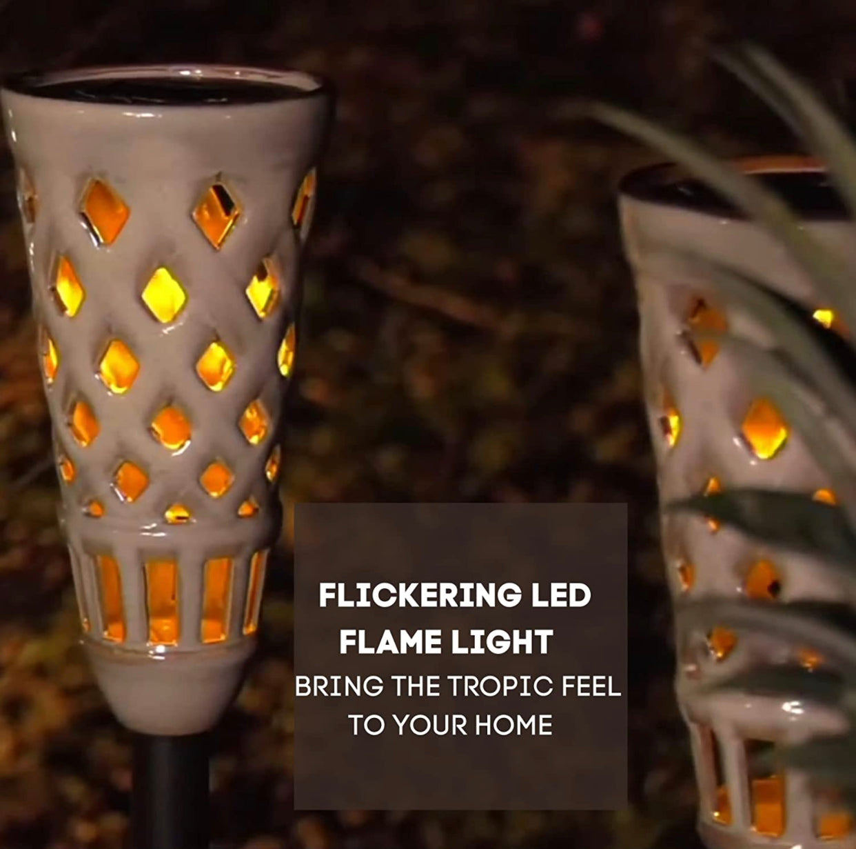 2Pack Energizer LED Ceramic Solar Tiki Torch Lights Dancing Lights Outdoor WF. Condition is New.
