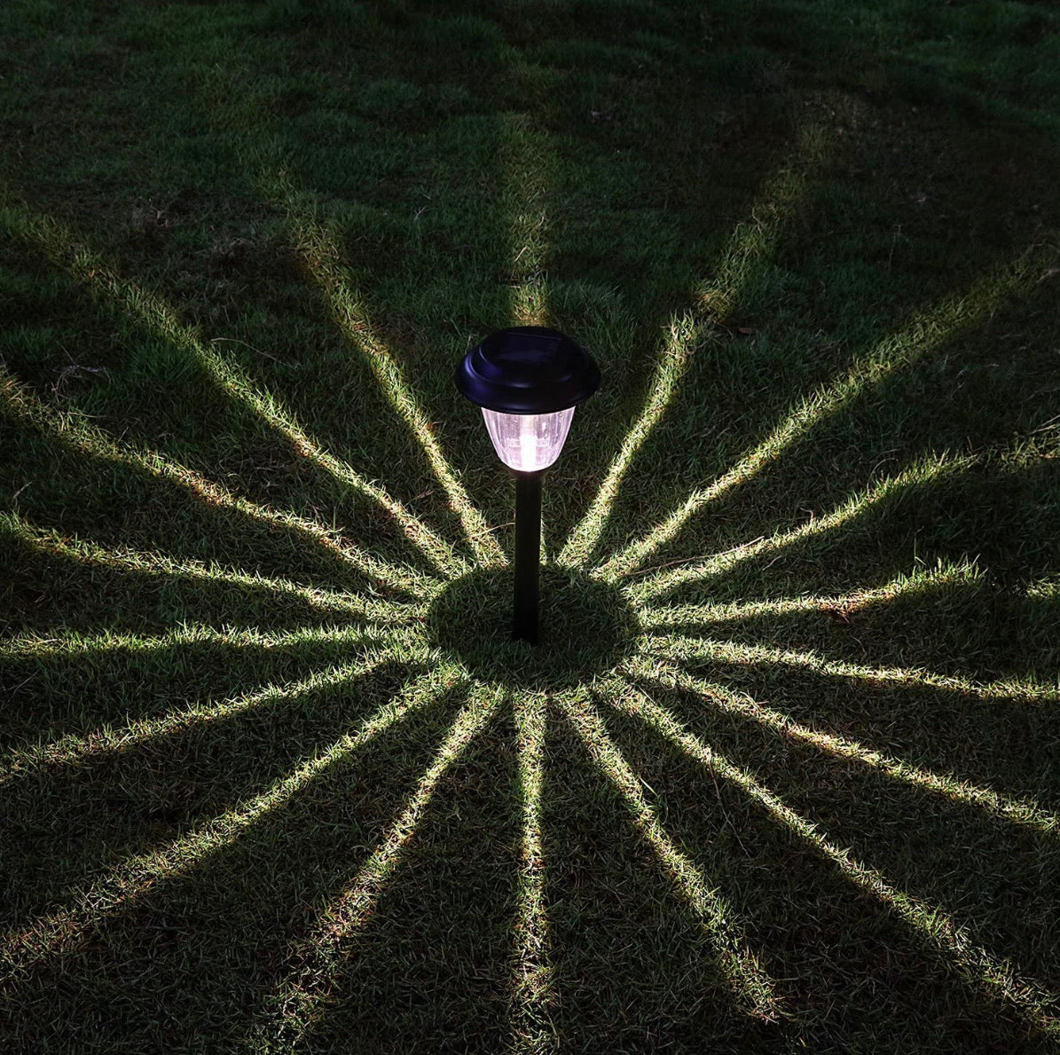 •8 pack includes: 8 stake lights, batteries, and ground stake, each with a pre-installed rechargeable Energizer AA NiMH battery•Glass lens with crystal panel•No wiring or electricity required•Stainless steel construction•Some SIMPLE assembly required•For outdoor use only•15 Lumen Waterproof•Measurements: Light 15-1/2"H x 6-1/4"Diam; Stake 5"•Imported