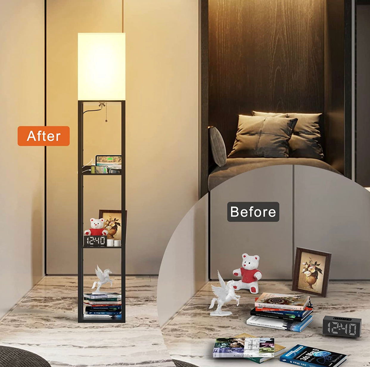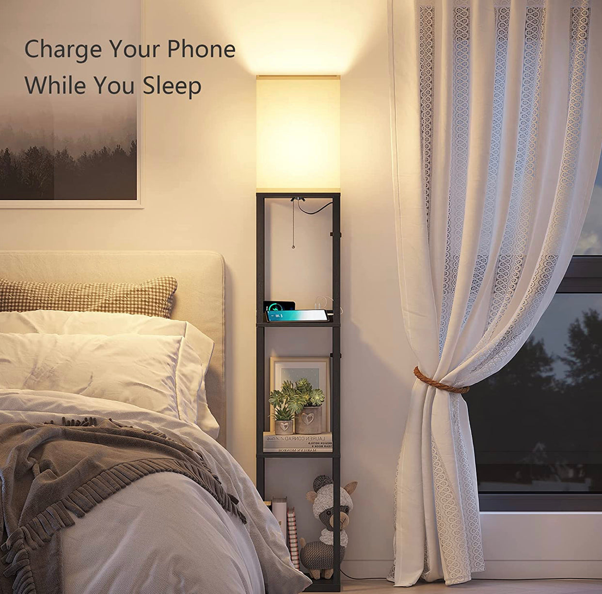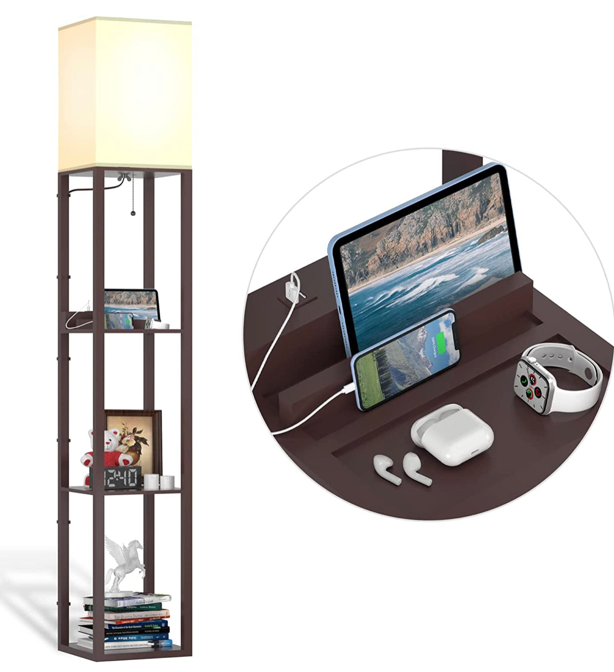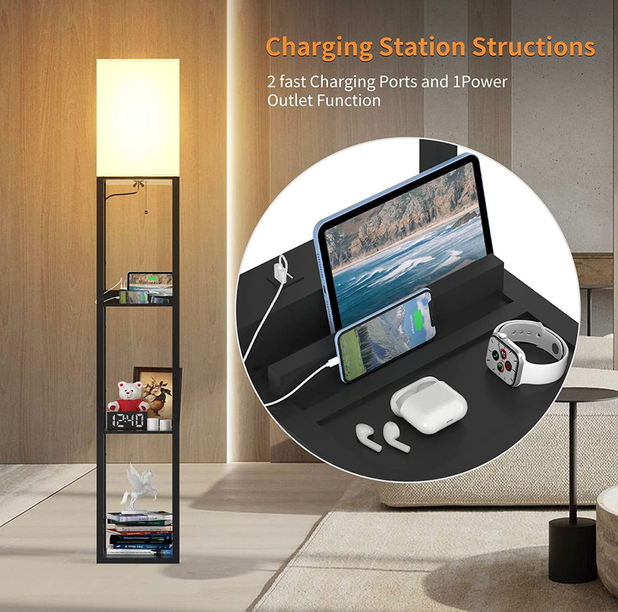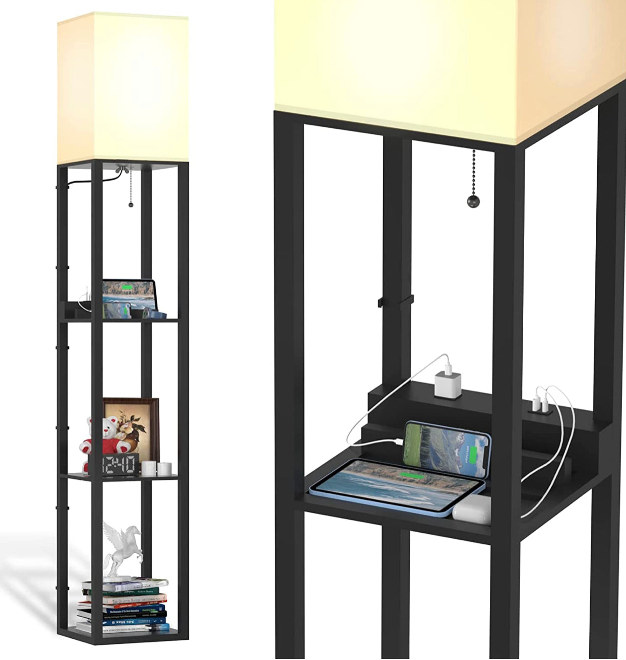 Floor Lamp Charger - Shelf Floor Lamp with USB Charging Ports and Electric Outlet