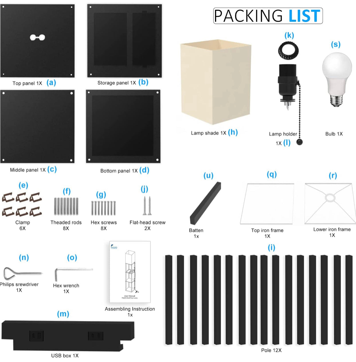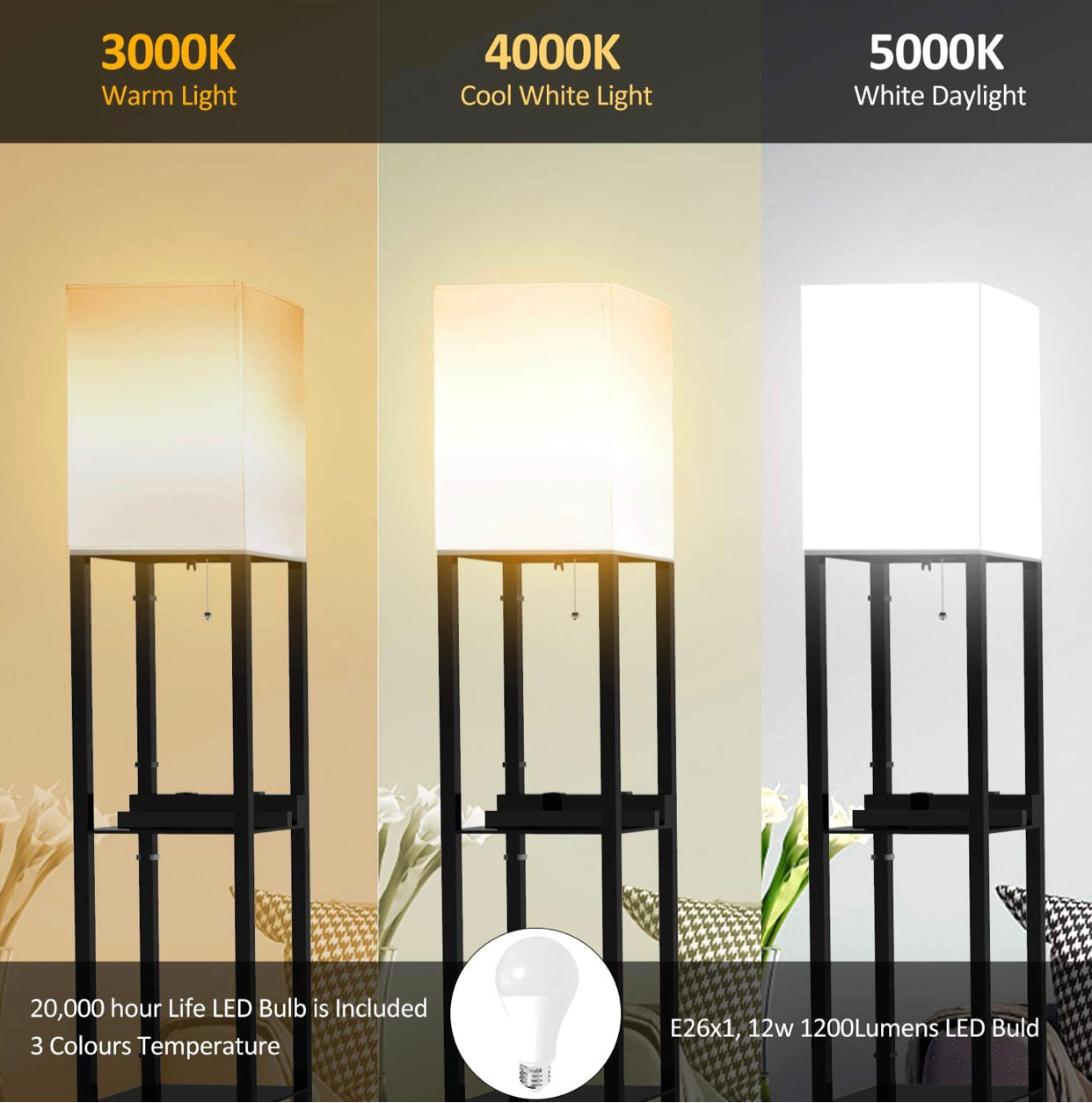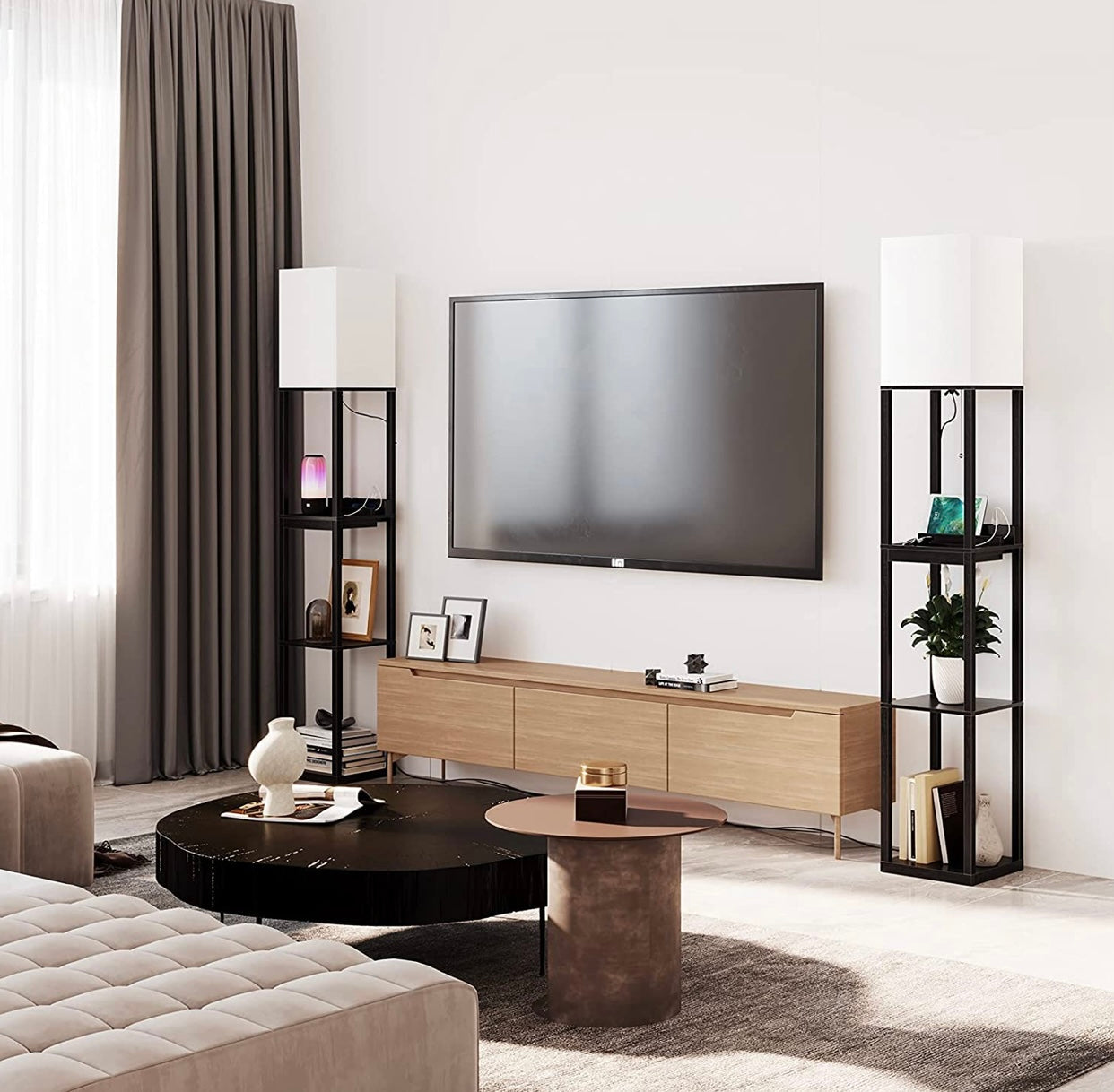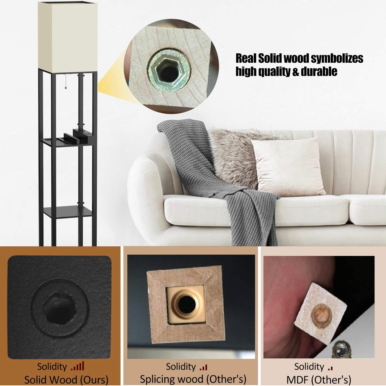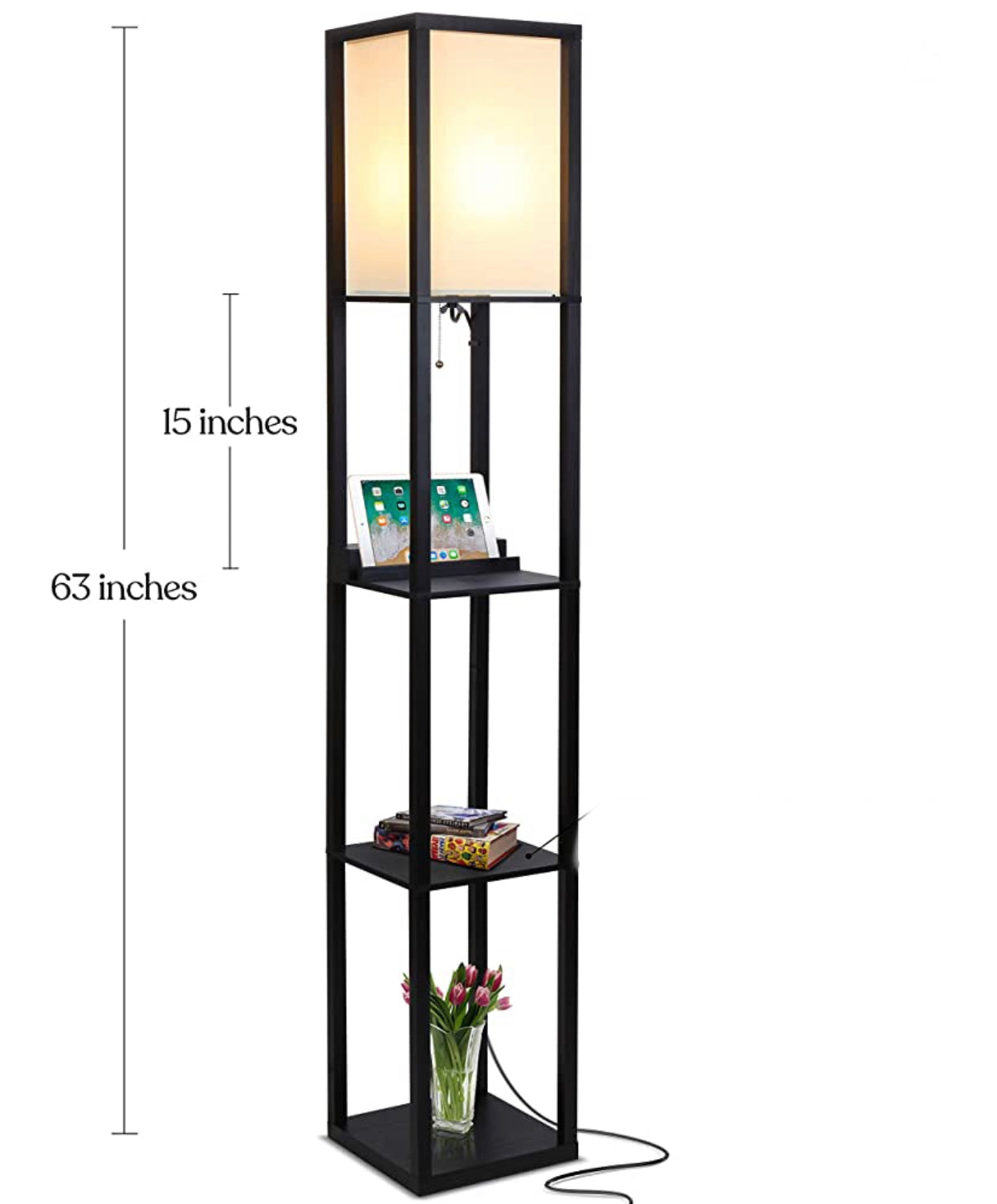 Floor Lamp Charger - Shelf Floor Lamp with USB Charging Ports and Electric Outlet