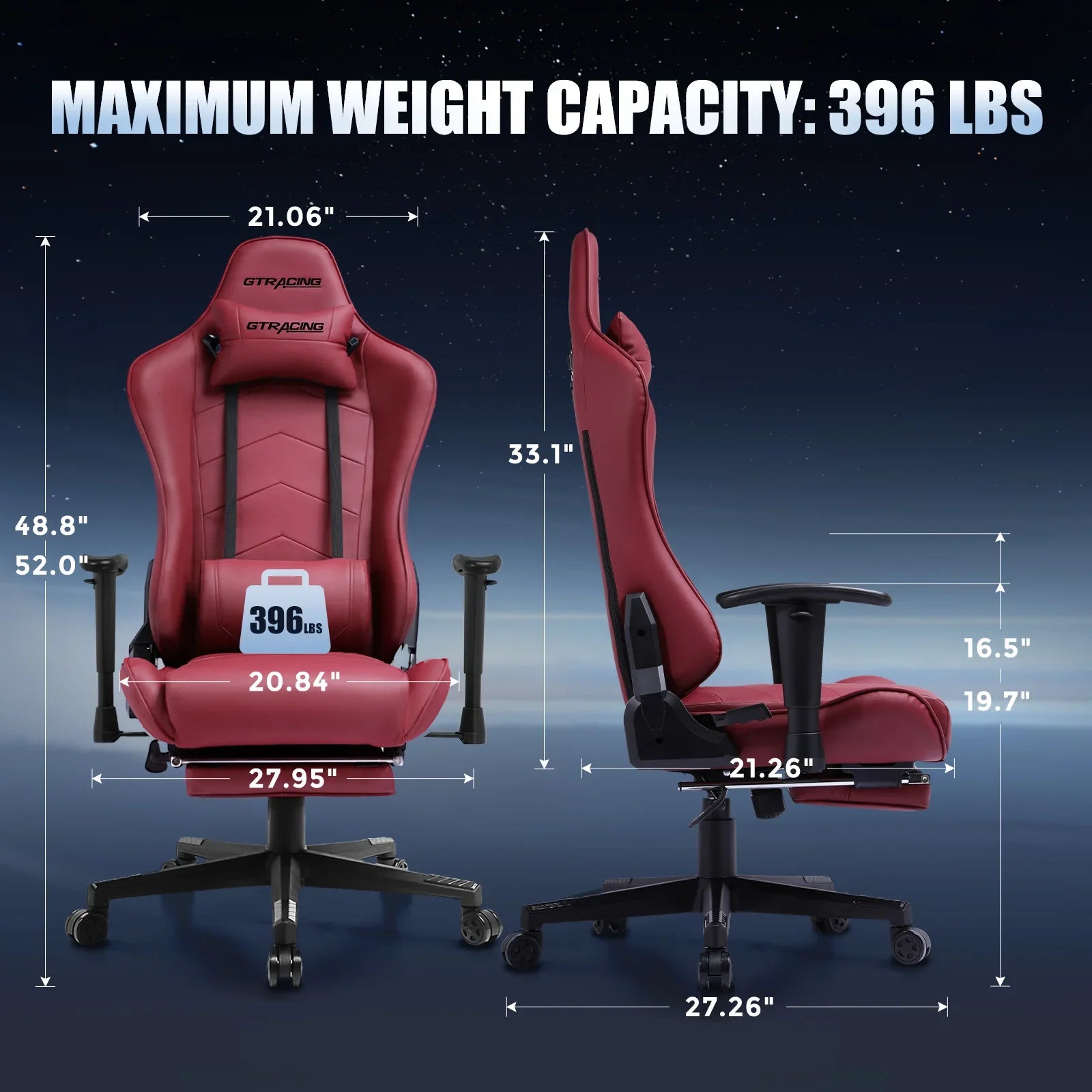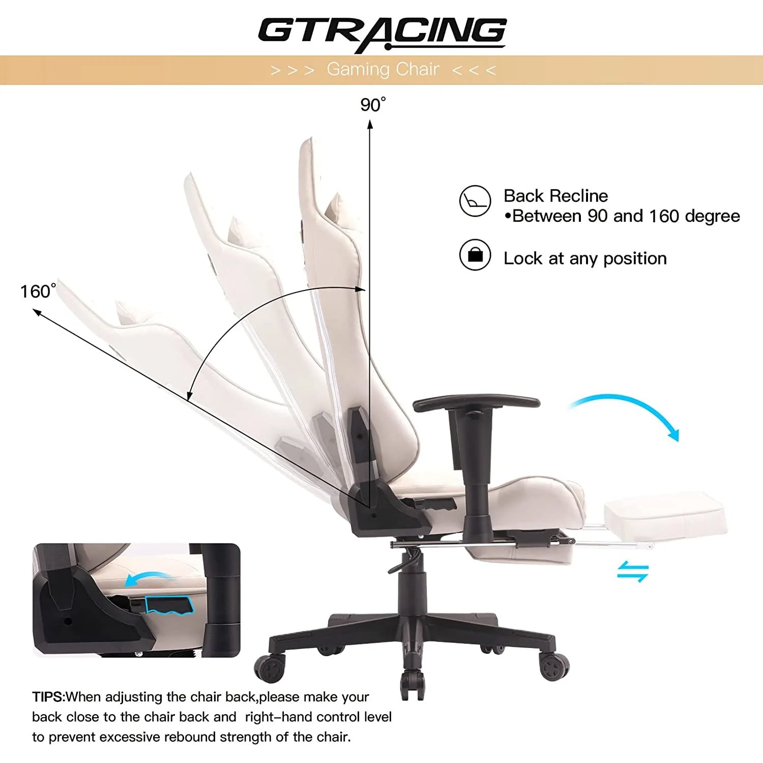 compared with other gaming chairs, the backrest of this racing-style gamingchair can be adjusted from 90 to 160 degrees, allowing you to rest more comfortably after the game. The chair can bear 396 pounds, so you can liedown without worrying about falling.
