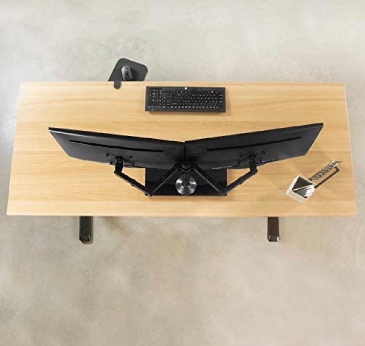 Freestanding Dual Monitor Stand with Sleek Glass Base and Adjustable ArmsHeave Duty , Mounts 2 Screens
