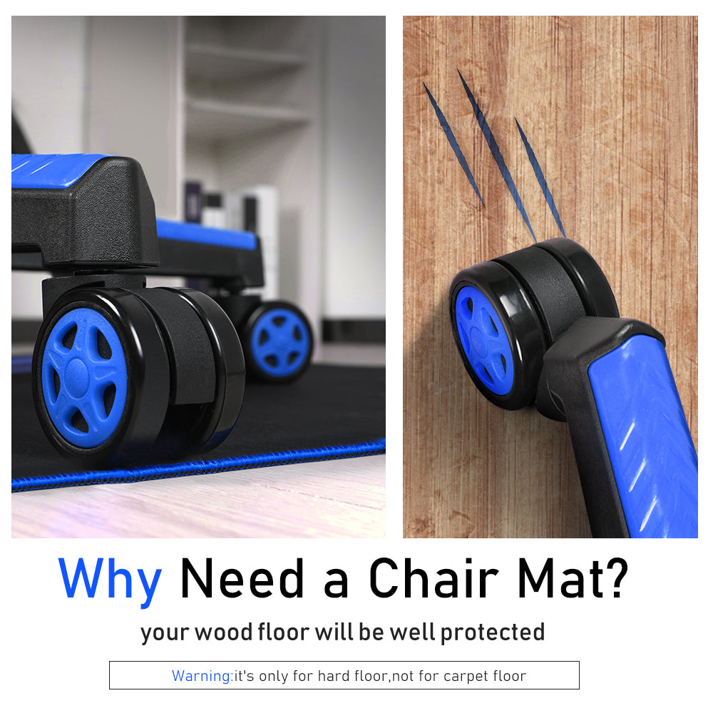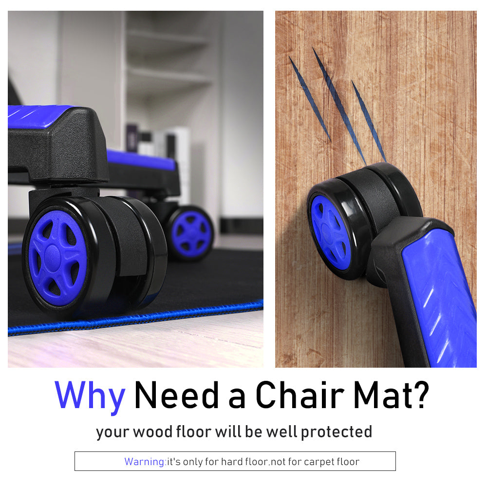 - Anti Slip Steady: The slip resistant bottom design provides stability and holds the floor mat firmly in place. The surface allows your chair casters to move easily while carrying out daily tasks, but has enough grip to maintain controlled rolling so the chair won't slide or fall over.