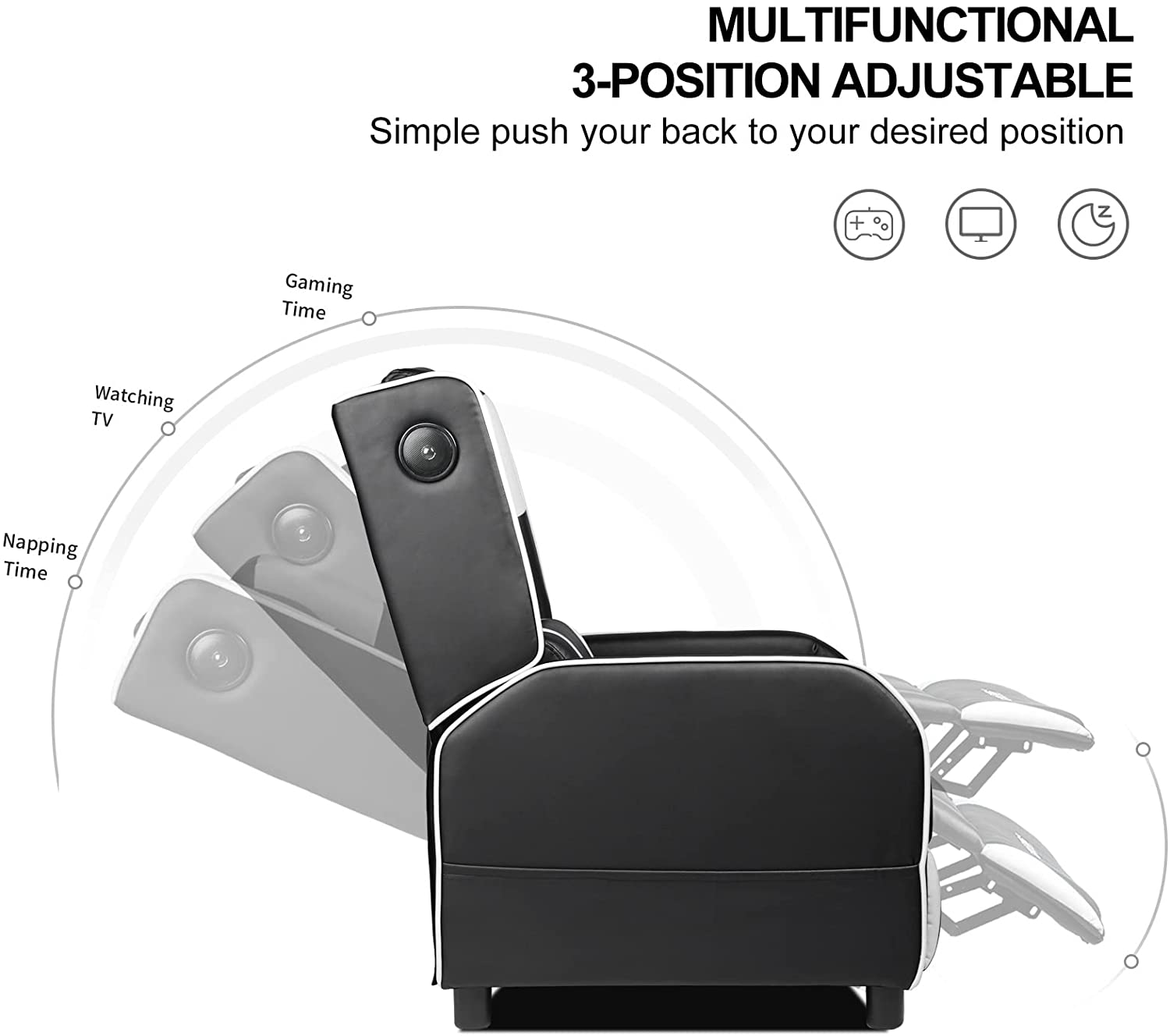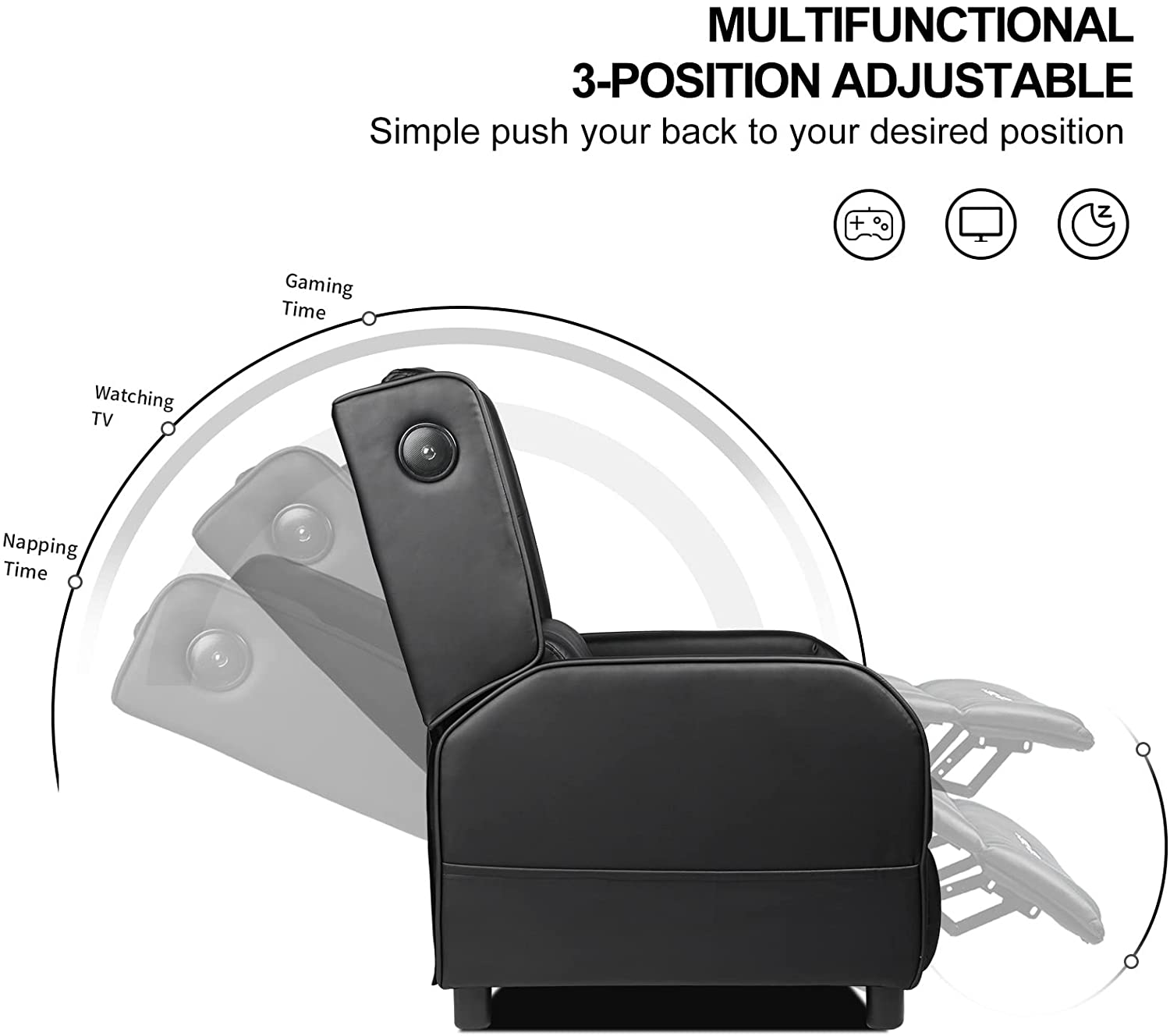 - Easy Reclining for Multiple Use: This recliner features a push-back design, offering easy access to different reclining positions for gaming, reading or taking a nap. Simply sit down, push back and find the position you’re most comfortable in.