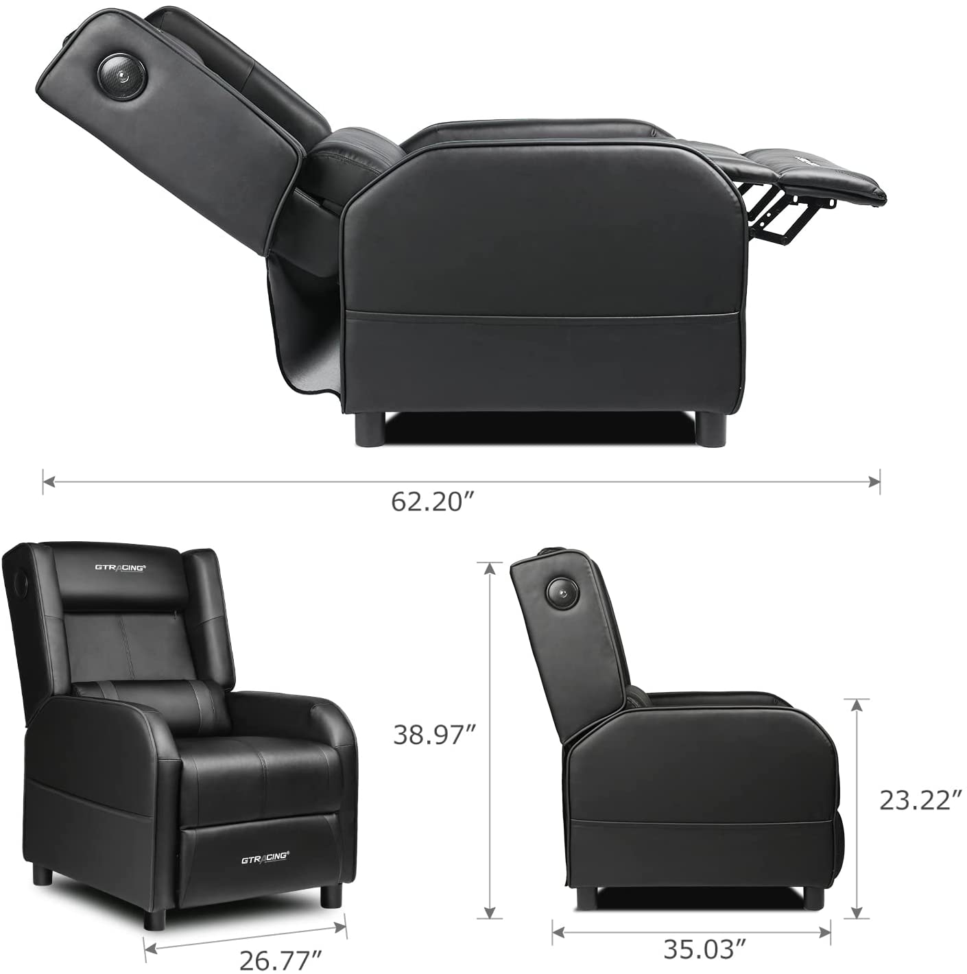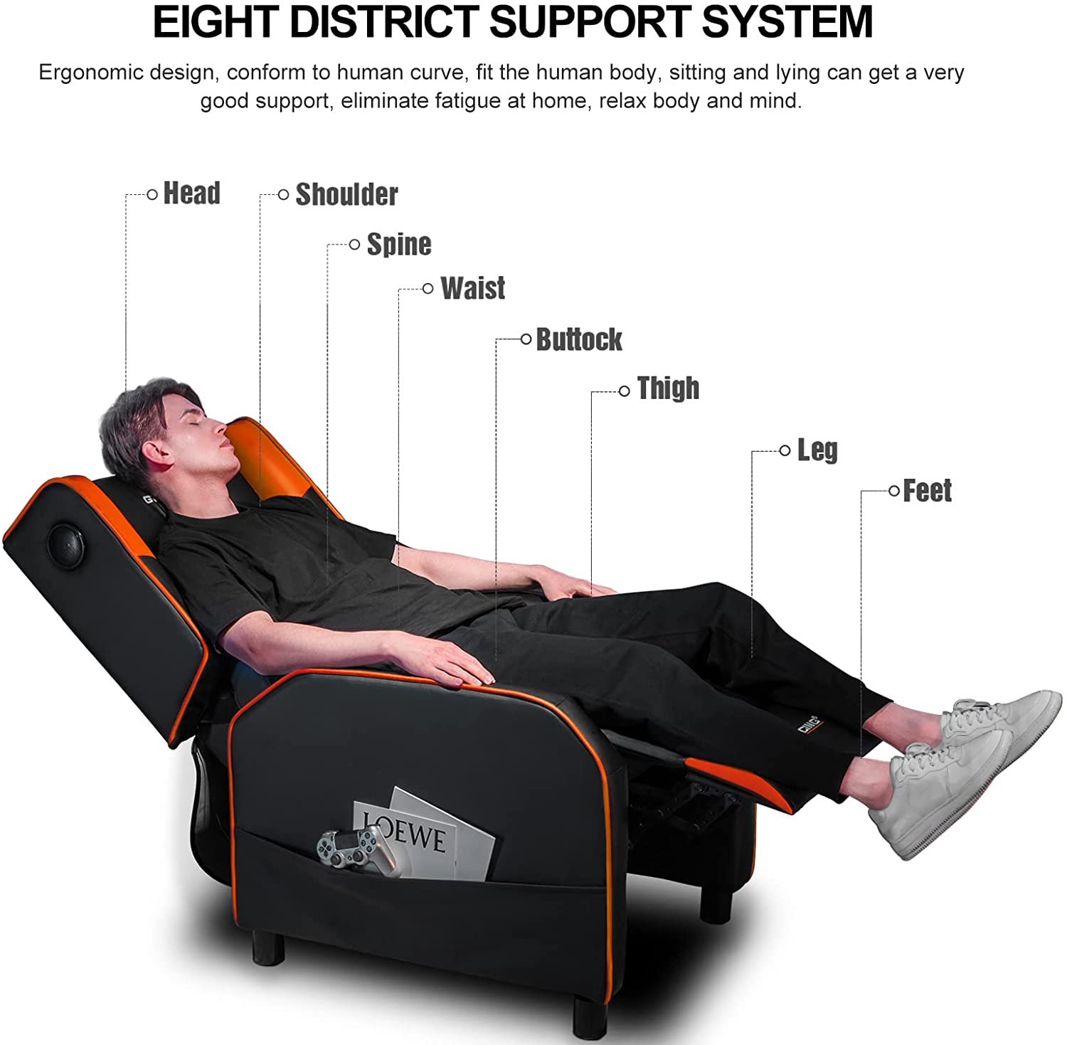 - Gaming Recliner with Speakers: Built-in Bluetooth speakers deliver remarkable and richly detailed stereo sound and create a full immersion experience while you're gaming, listening to music or watching a movie.