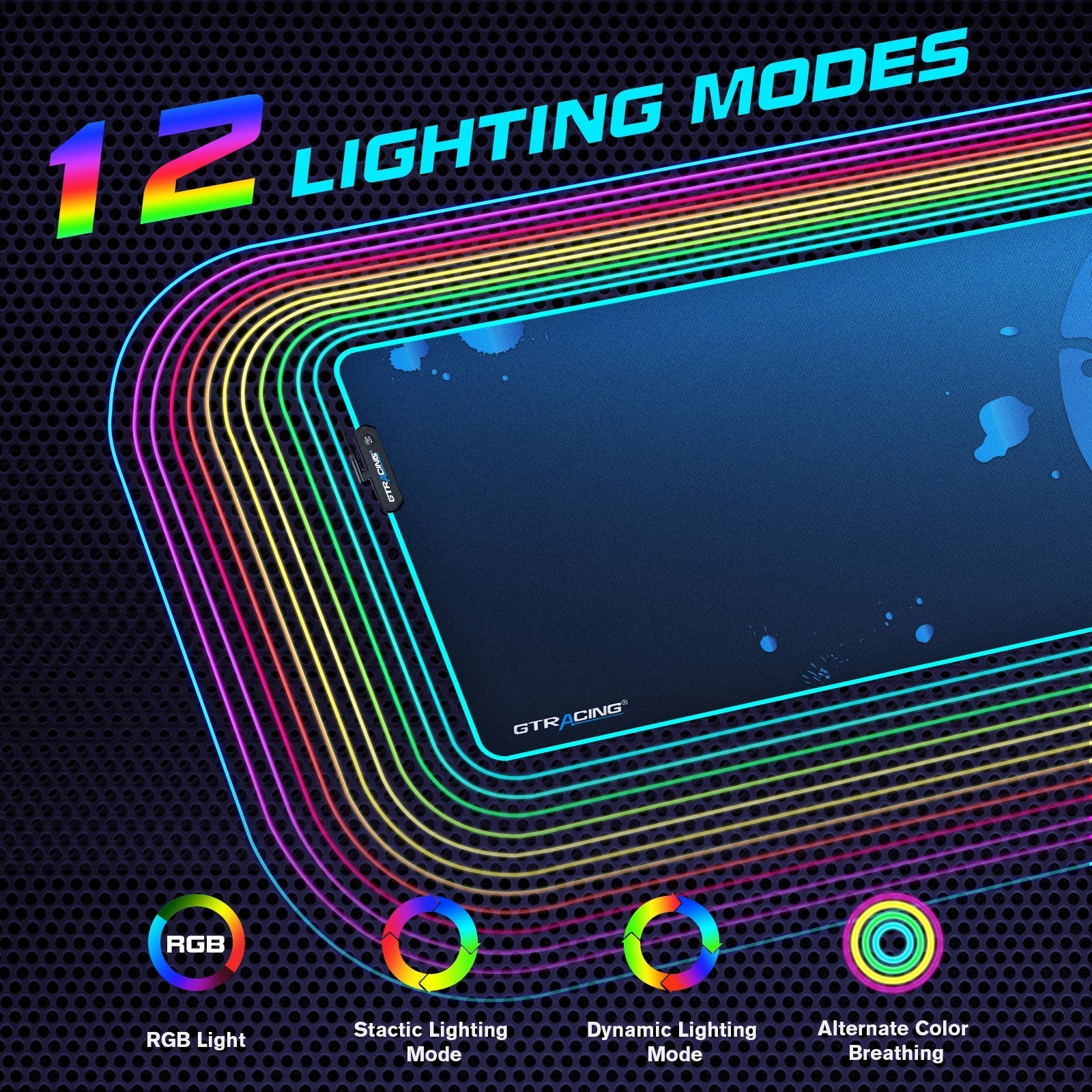 - 12 Lighting Modes: This gaming mouse pad includes 9 kinds of static lighting modes and 3 dynamic lighting modes. Plug and play, no driver required. Press once on the button to change the lighting mode, press twice to change the brightness, press and hold about 3 seconds to turn ON/OFF, and the memory function could remember the last lighting mode you select.
