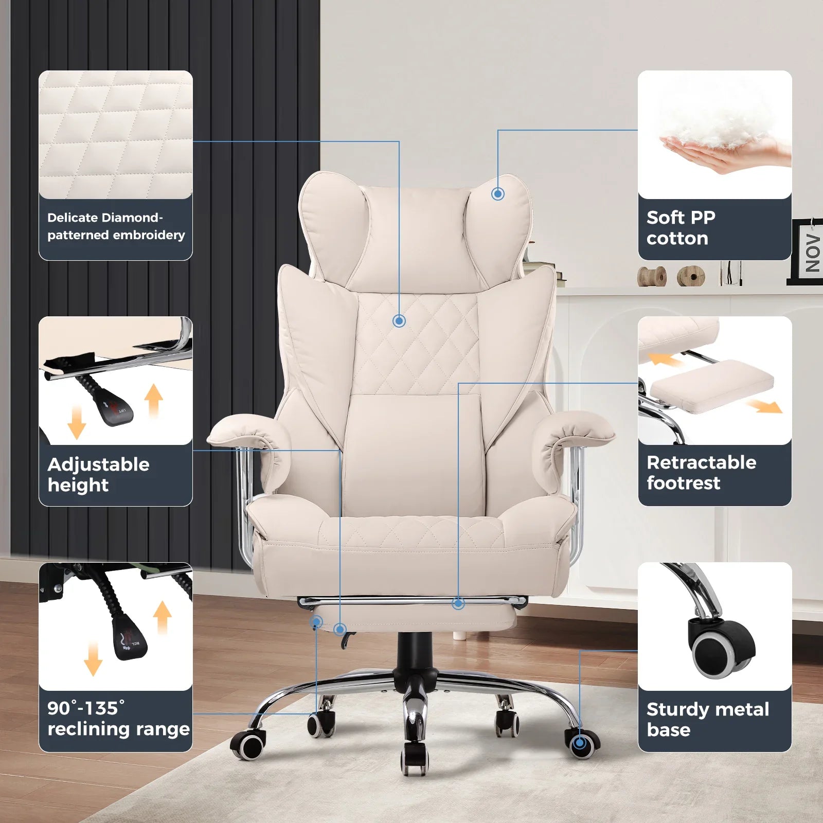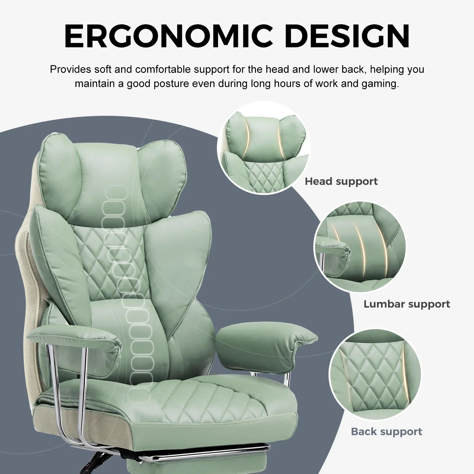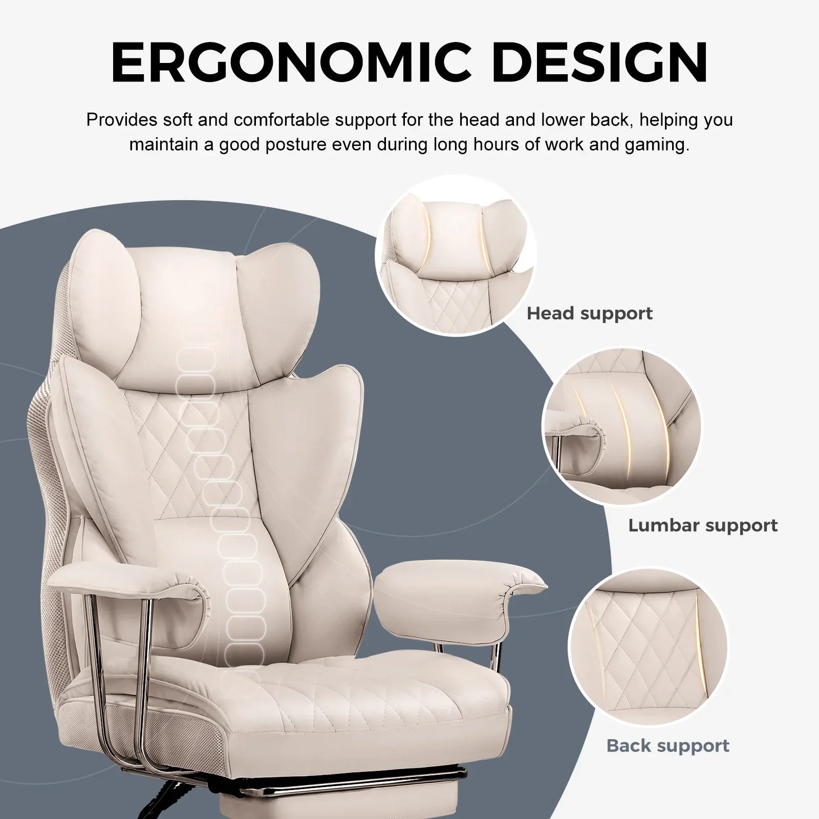 With a flexible recline ranging from 90° to 135°, it accommodates various activities like work, reading, entertainment, and relaxation.