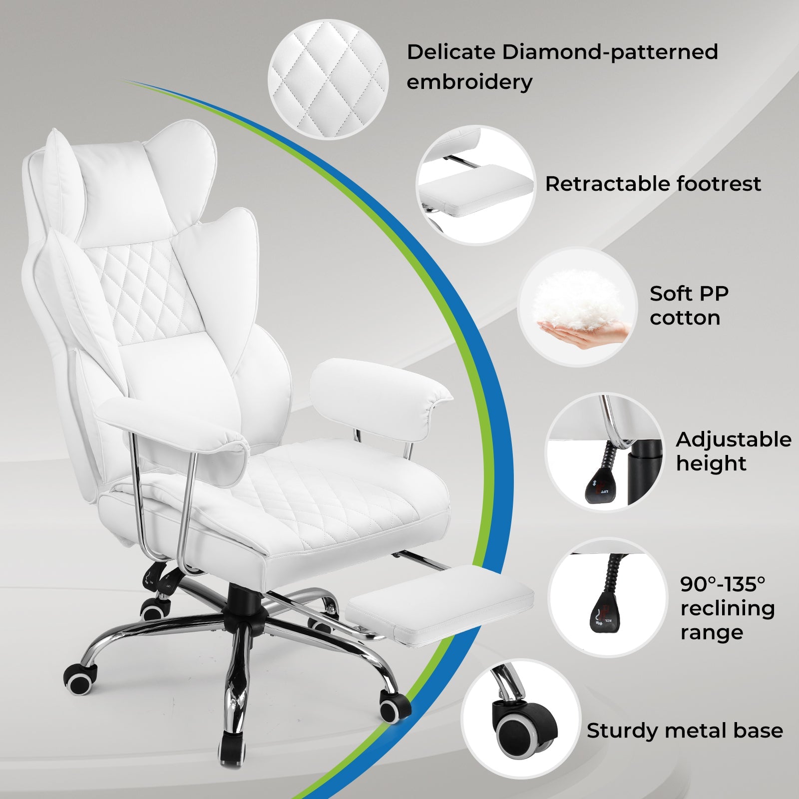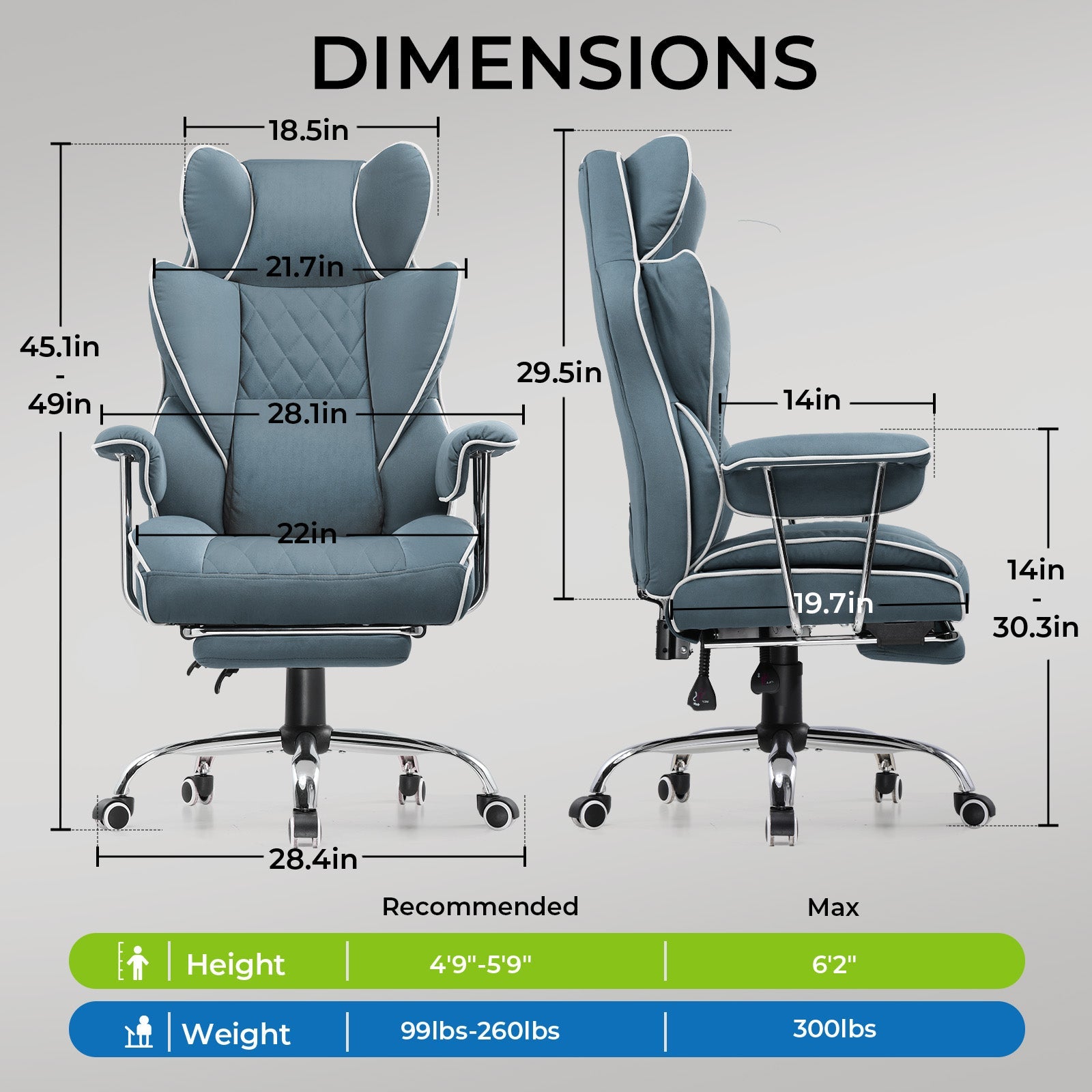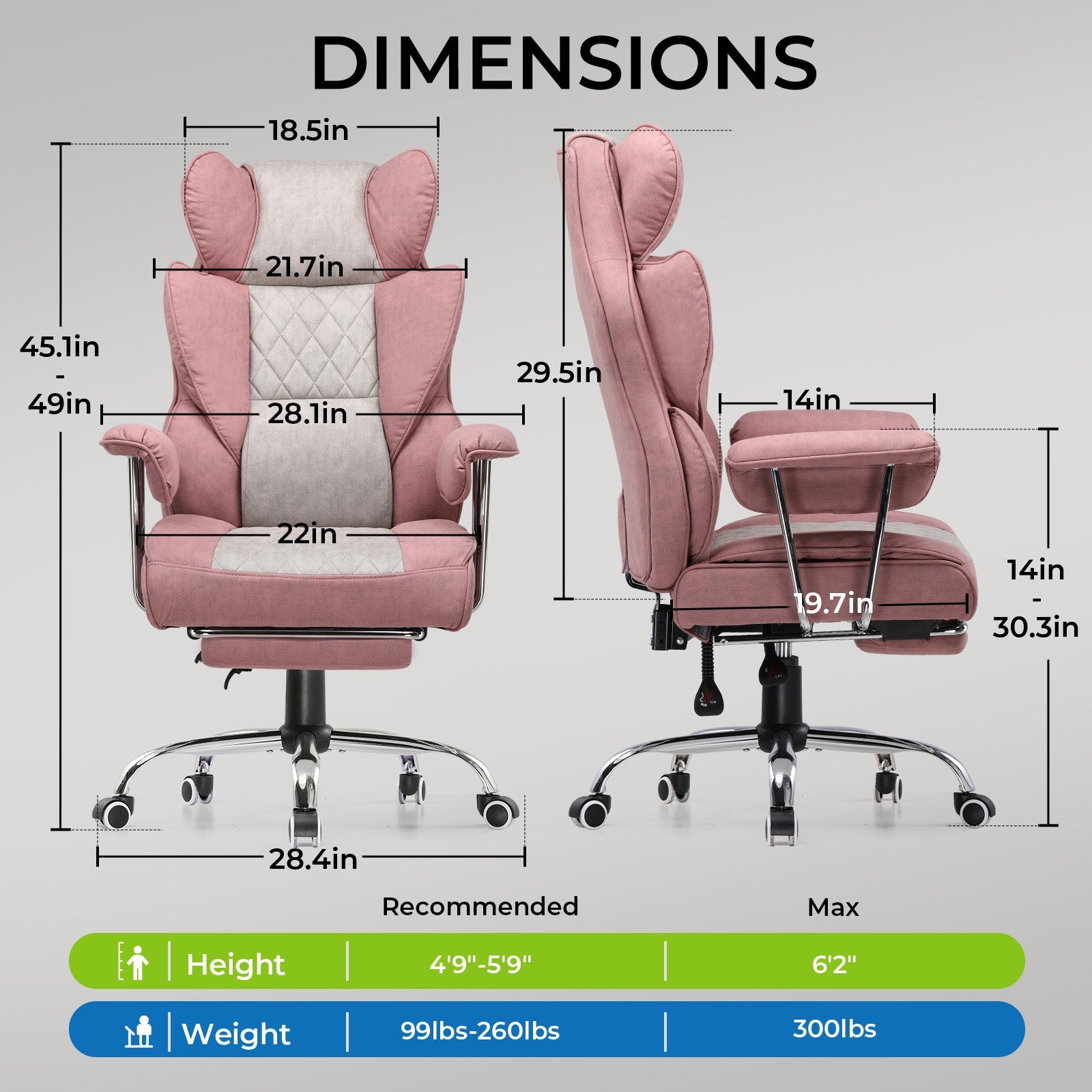With a flexible recline ranging from 90° to 135°, it accommodates various activities like work, reading, entertainment, and relaxation.