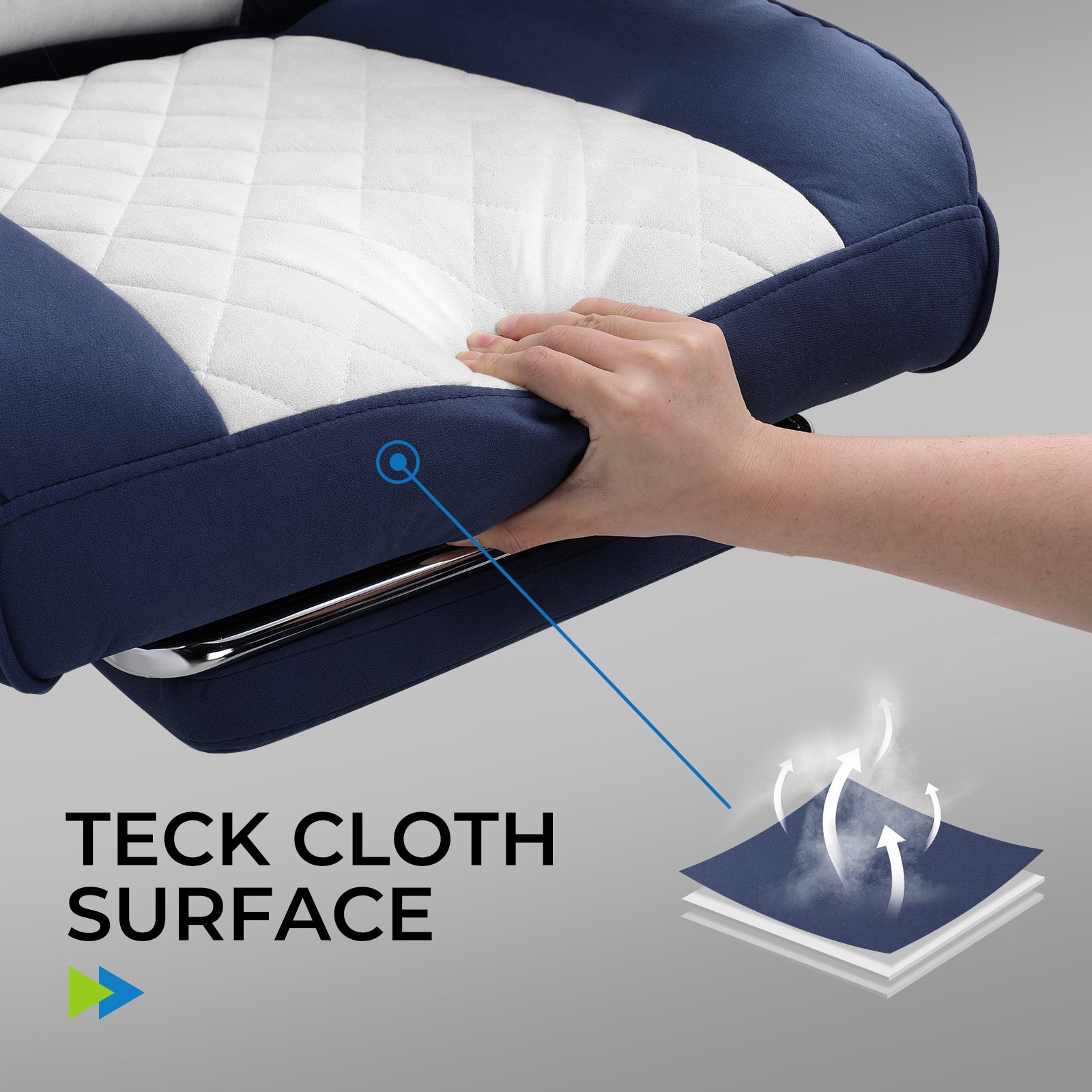 The chair's surface is made of technical cloth fabric, providing a soft touch, high moisture absorption, and heat dissipation, benefiting skin health. It is also highly durable, ensuring no cracking or peeling even with prolonged use.