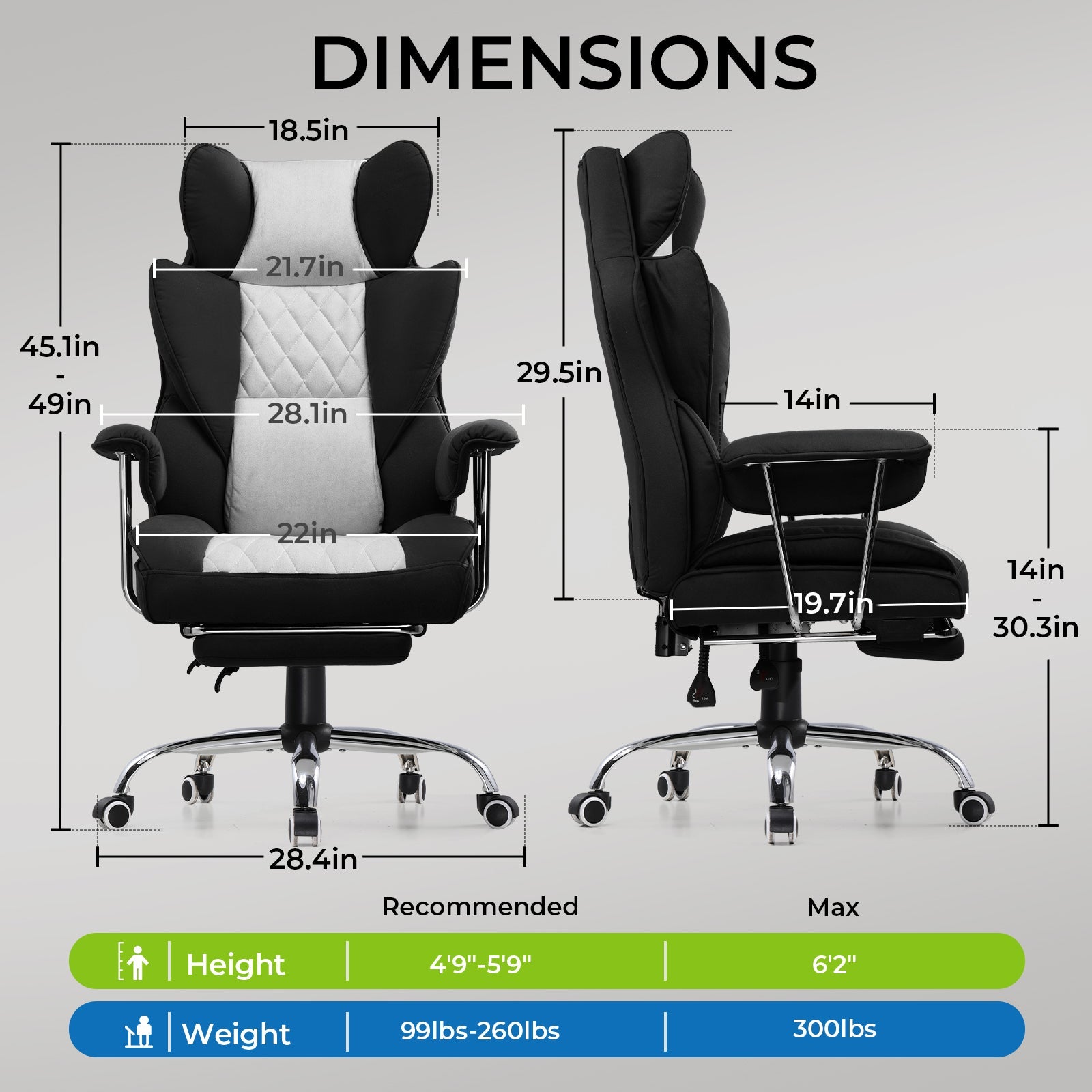 Premium TECH Fabric Seating(White and Black are made of PU leather)