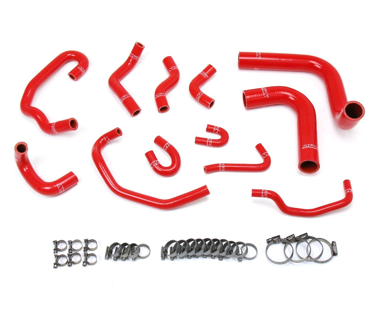 This brand new HPS High Temp 3-ply Reinforced Red Silicone Radiator + Heater Hose Kit for Toyota 93-95 Pickup 3.0L V6 Left Hand Drive is designed to replace stock OEM rubber radiator hoses and heater hoses which can eventually weaken over time, leading to premature failure. With premium quality silicone and race inspired design, this HPS silicon Radiator + Heater Hose Kit can withstand the harsh high temperature and high pressure operating conditions of the engine yet still maintaining peak efficiency during competition or daily driving. Old cracked or split radiator hoses and heater hoses are not efficiently cooling your engine which can cause it to overheat leaving you stranded. So maintain your vehicle cooling system by replacing your old brittle hoses now before it's too late. Perfect for racing or daily driving application. HPS silicone Radiator + Heater Hose Kit has all the correct bends and curves for a perfect fit replacement on your vehicle, compare to the universal hoses you can get from the local auto store, HPS hose kit is much easier to work with. HPS Silicon coolant Radiator + Heater Hose Kit is made from multi-ply premium grade silicone and reinforced with high-quality polyester for which reduces the risk of component failure and enables higher temperature and pressure to be maintained with complete confidence.