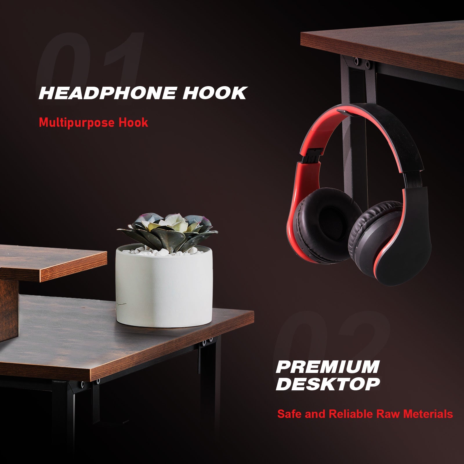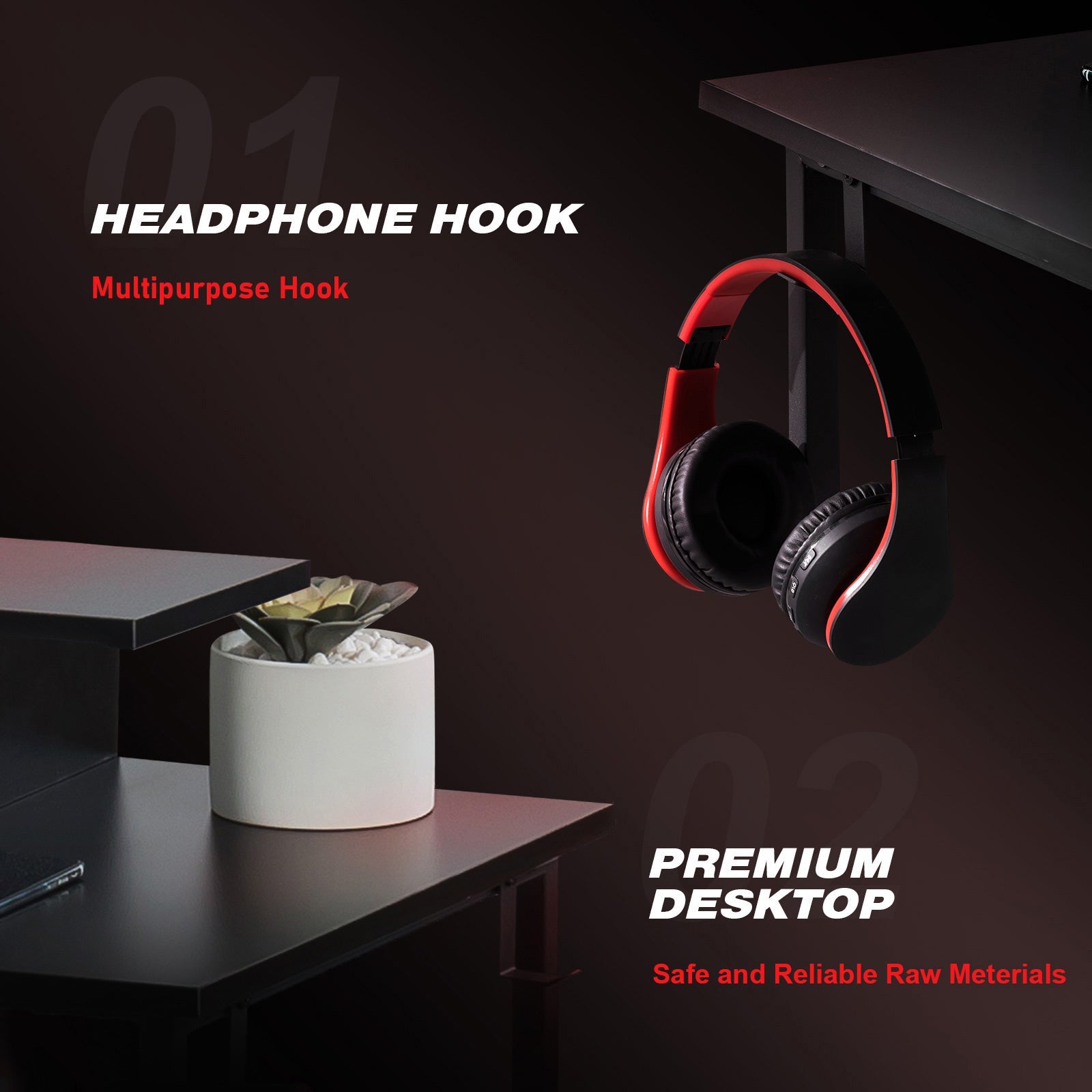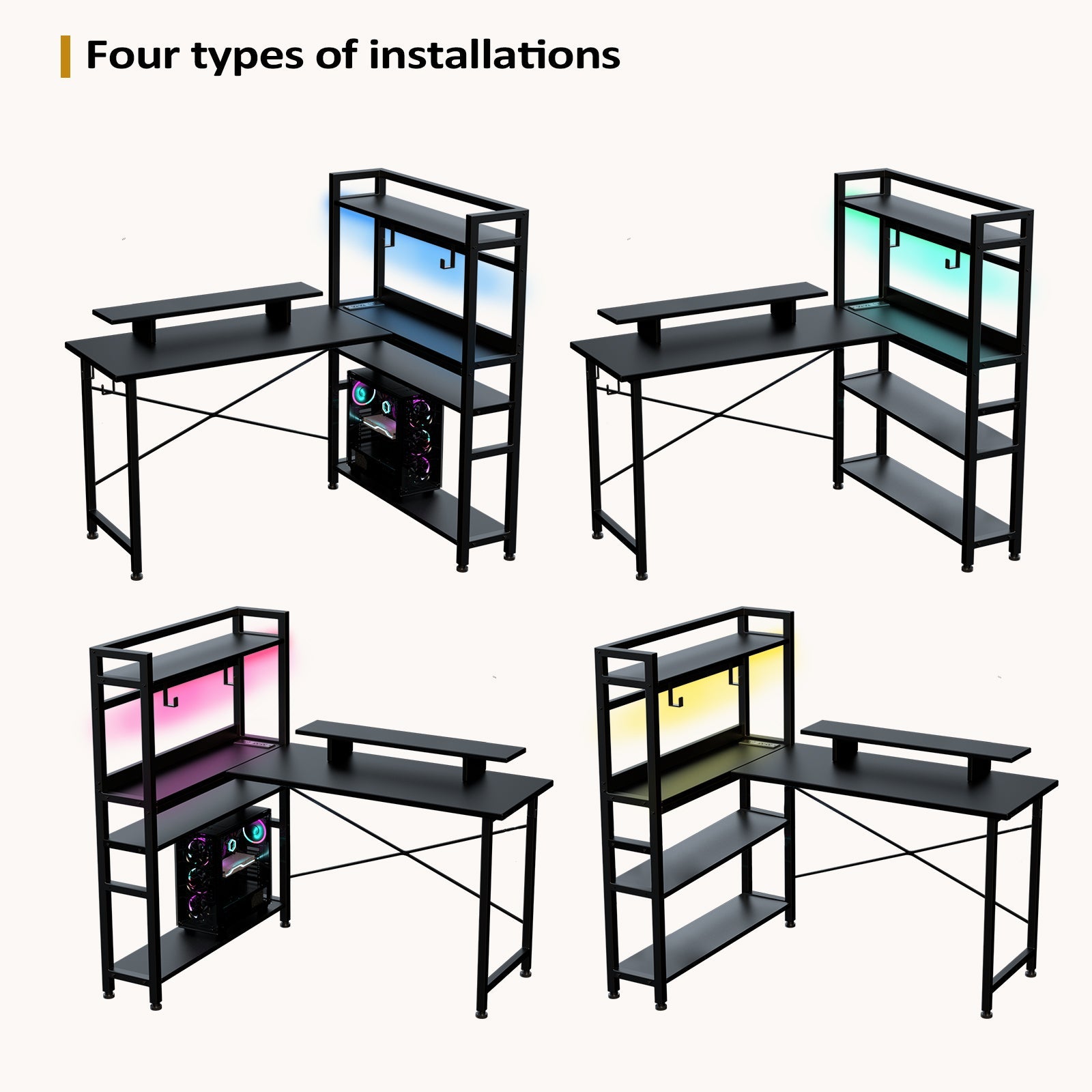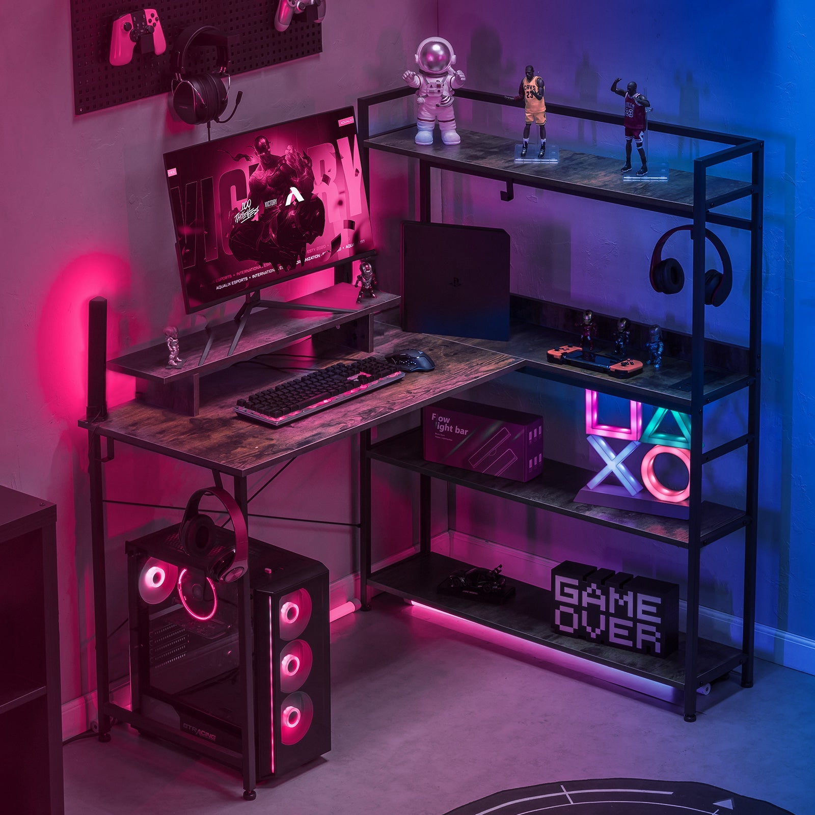 L-Shaped LED Gaming Desk with Monitor Stand