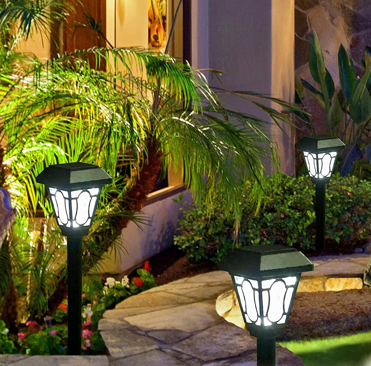 LAMTREE 48 Pack Solar Lights , Waterproof Auto Solar LED Lighting (Cool White)
