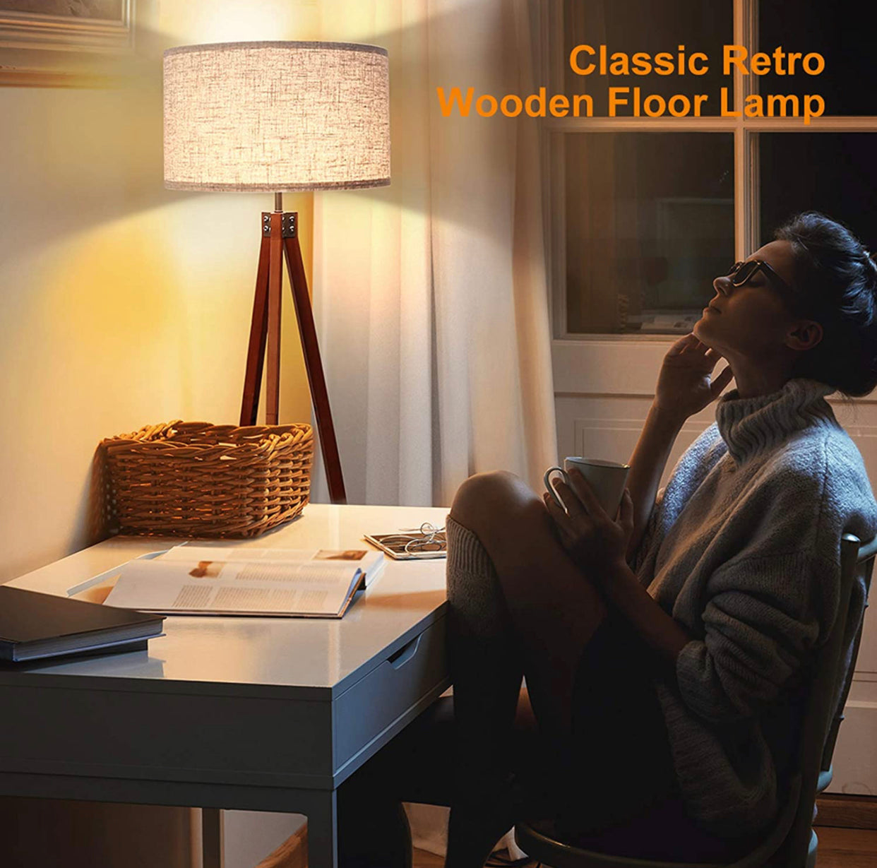 Modern Tripod LED Floor Lamp – Mid Century Dimmable Modern Light for Contemporary Living Rooms - Tall Free Standing Lamp with Solid Wood Legs