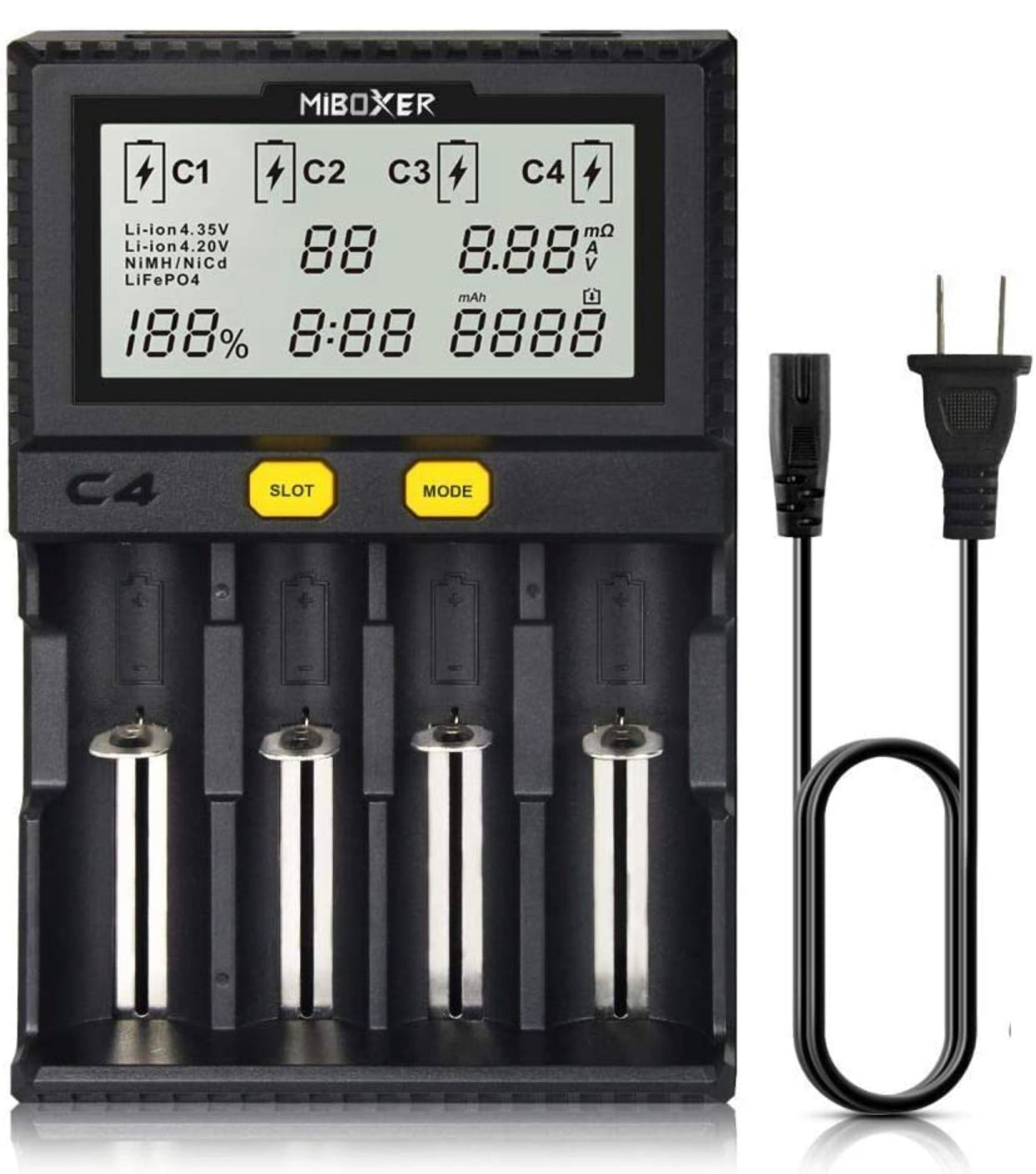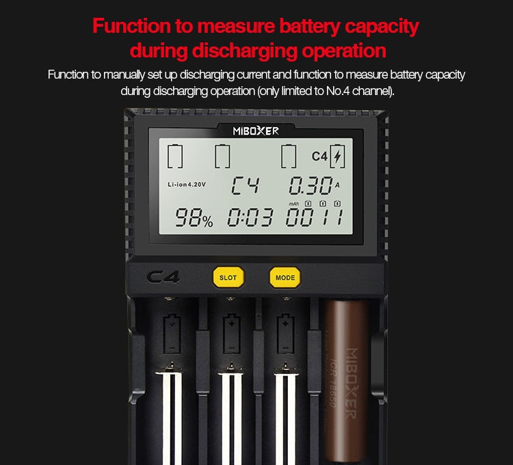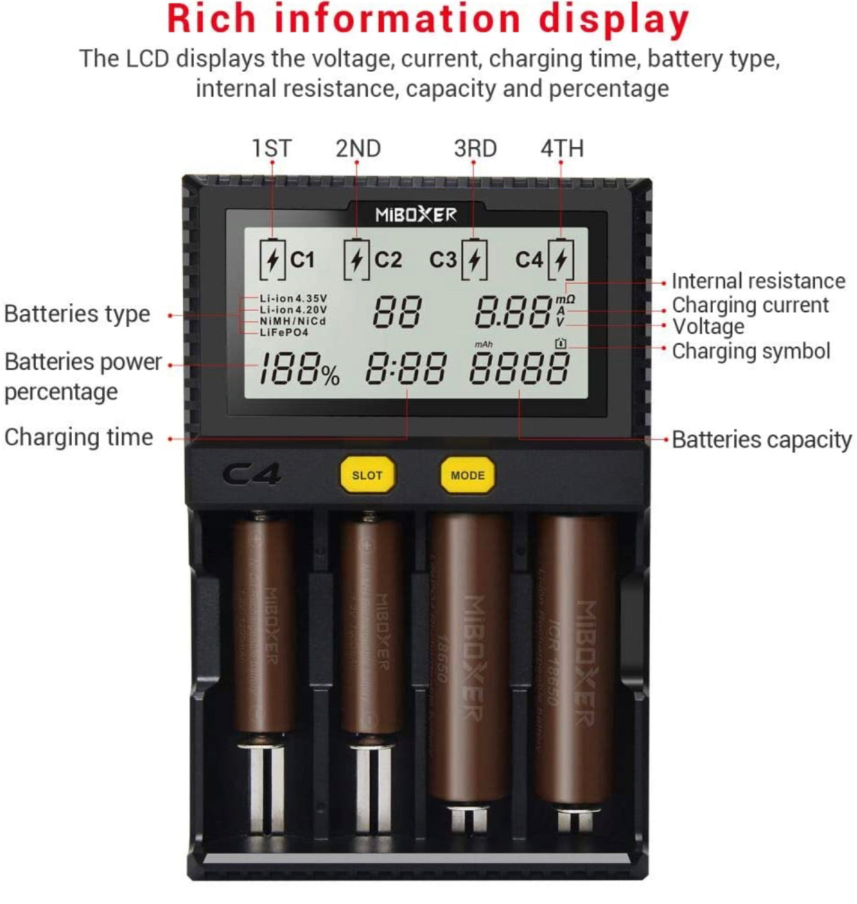 Original MiBOXER Smart Universal 4-Bay Charger, Automatic LCD Display,Fast Charging Rechargeable Li-ion LiFePO4 Ni-MH Ni-Cd AA AAA