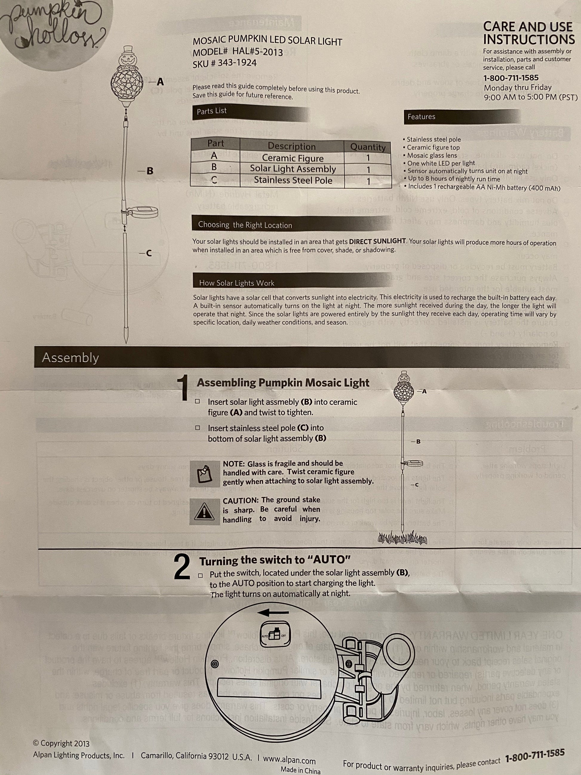 Pumpkin Solar LED Jewelry Multi-Colored 32 in. Mosaic Patterned Globe Pathway Stake Light (1-Pack)
