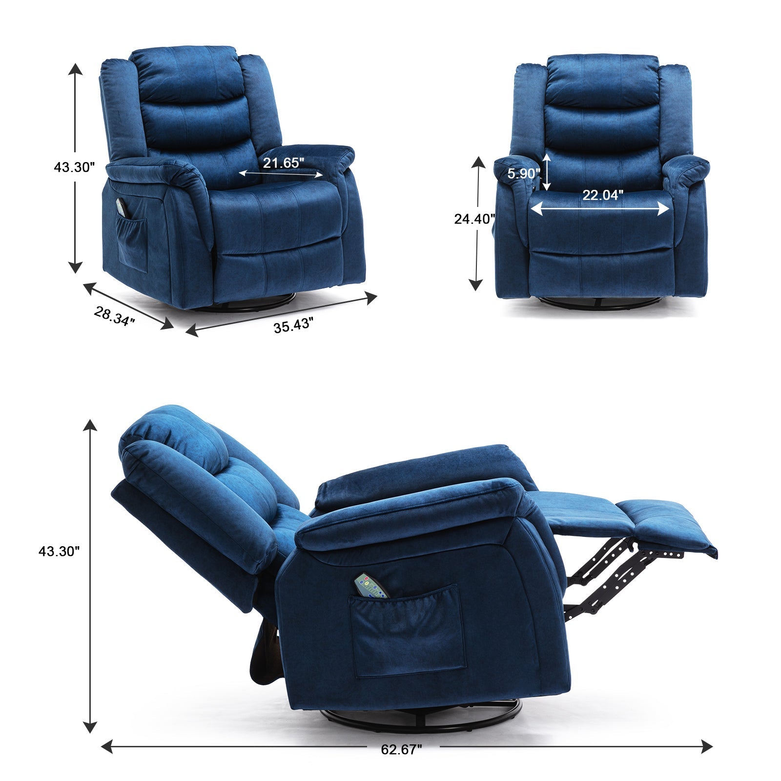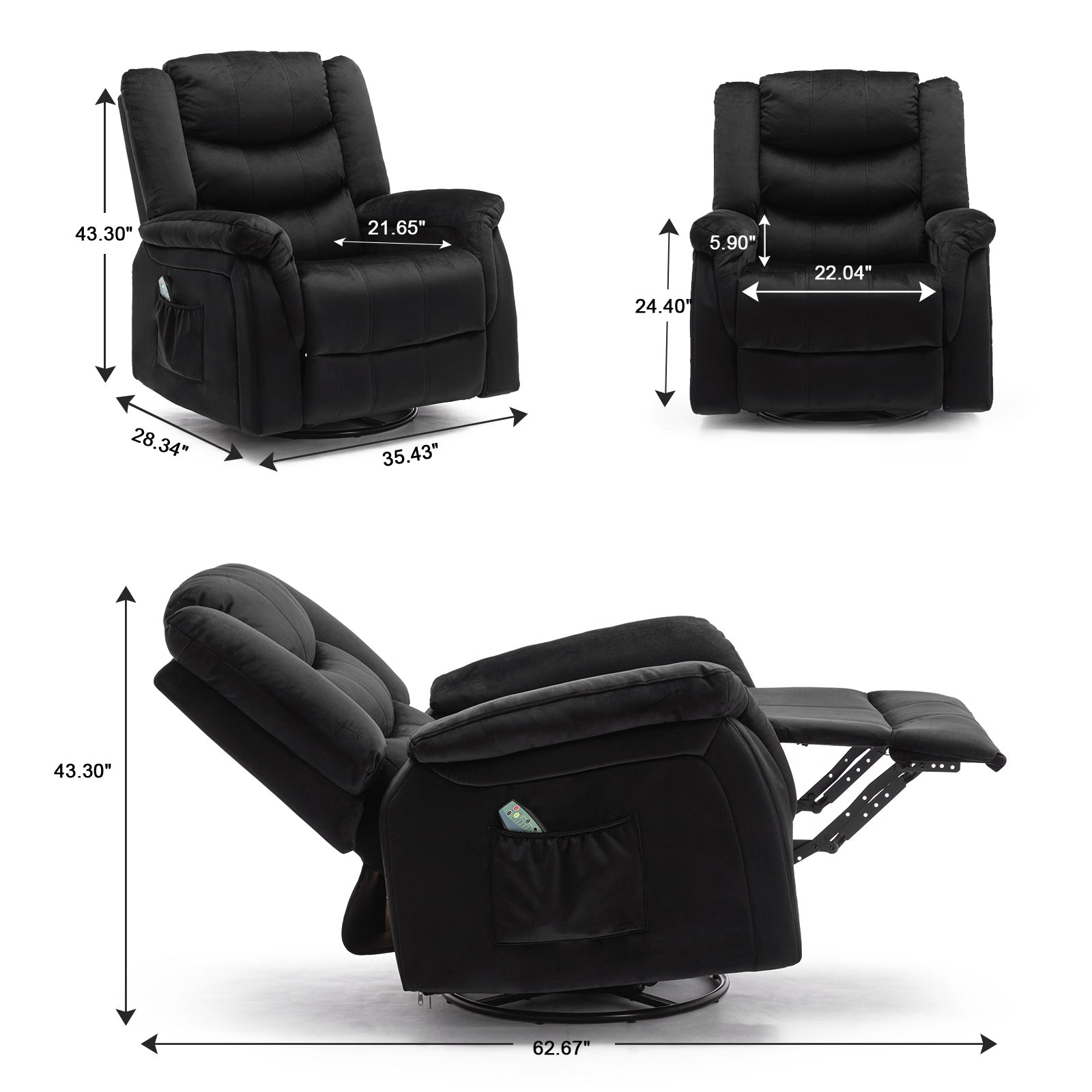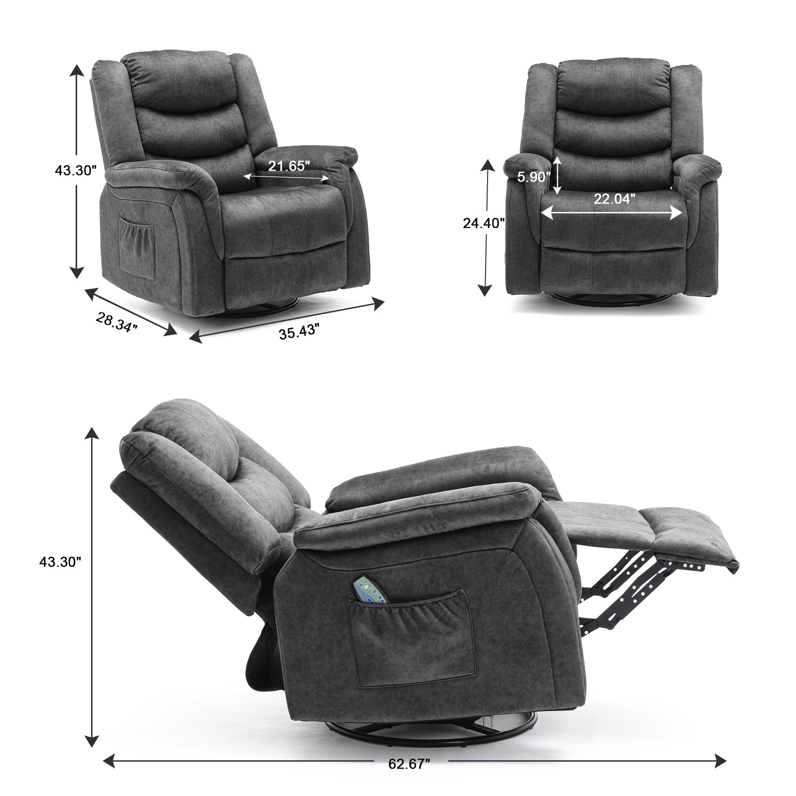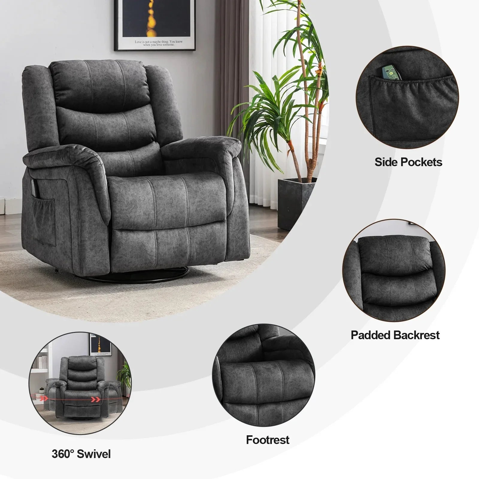 - Massage & Heating: The recliner sofa has 8 vibration points,5 vibration modes, and waist heating function that can help you relieve waist pressure and promote blood circulation. The vibration intensities could be adjustable which offer you the best relaxation.