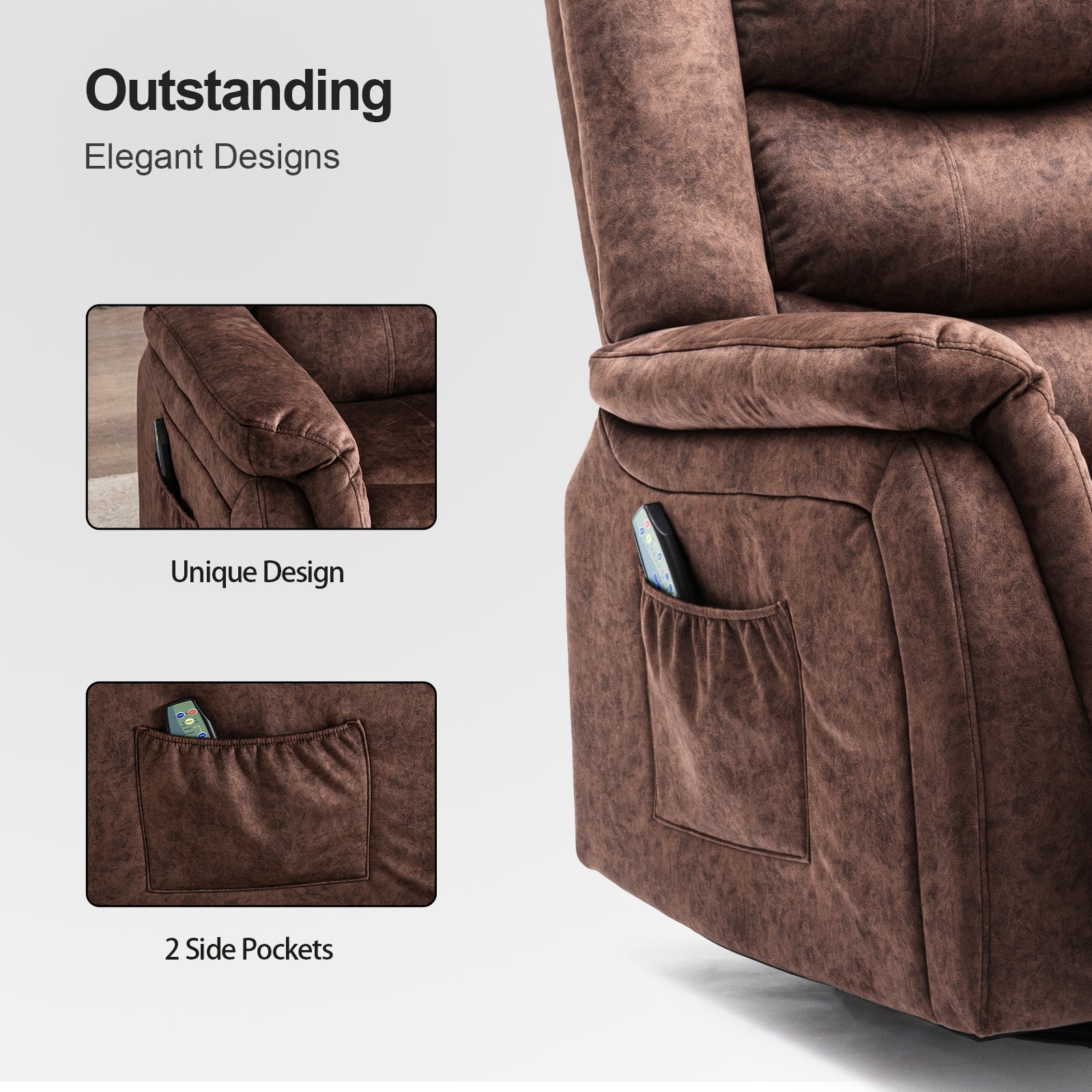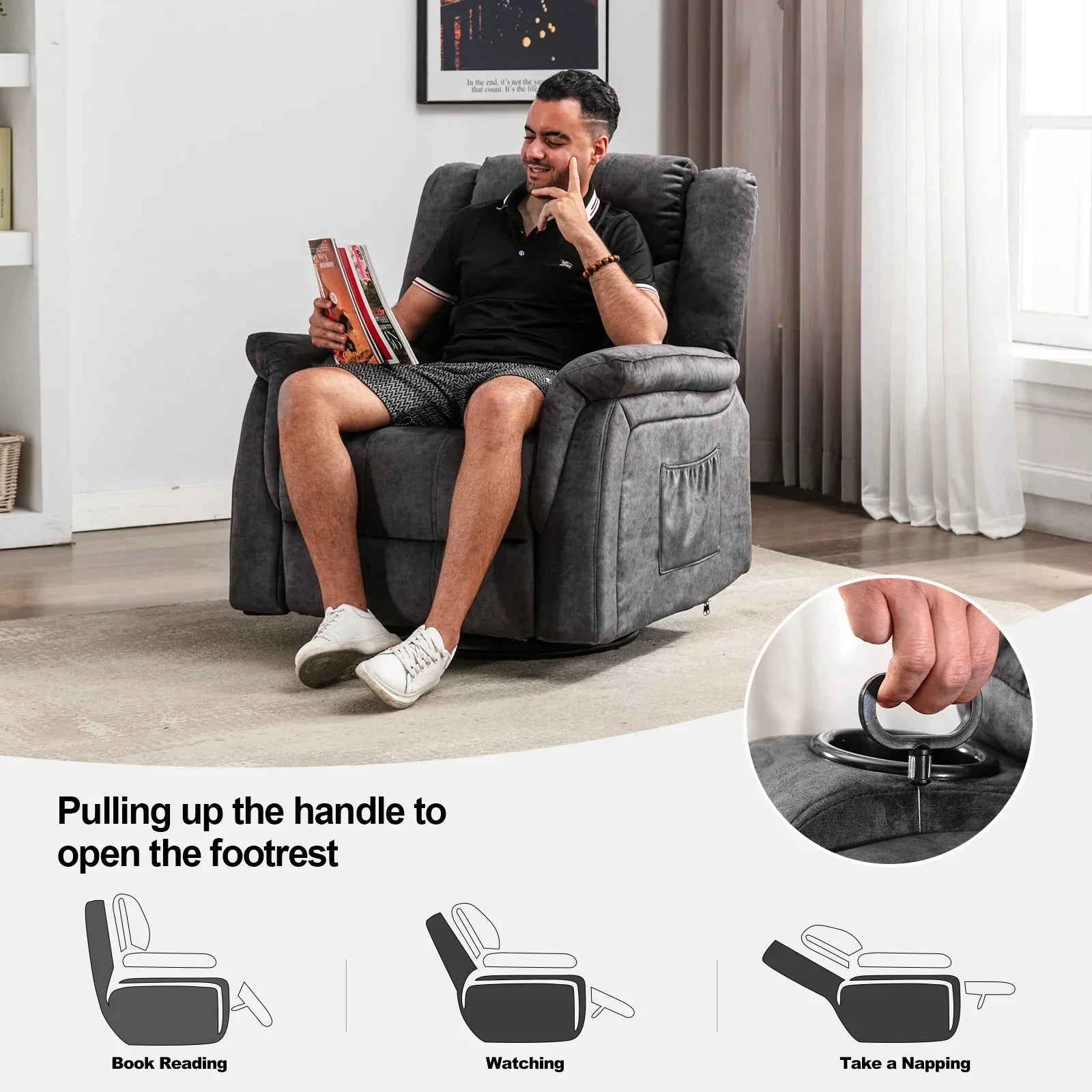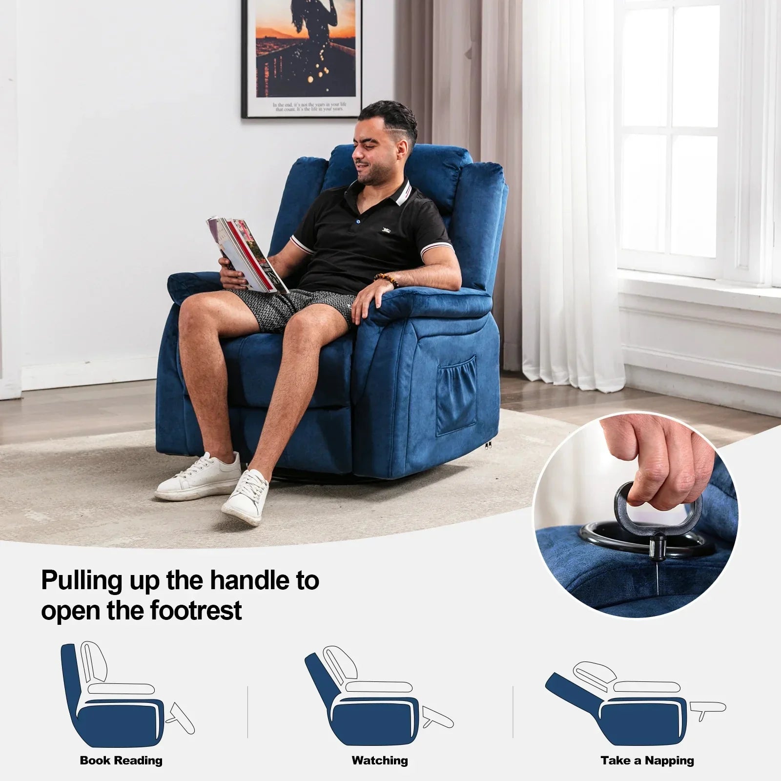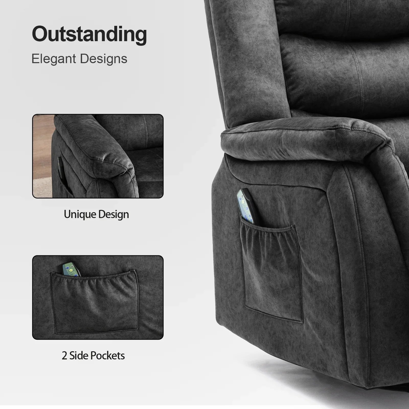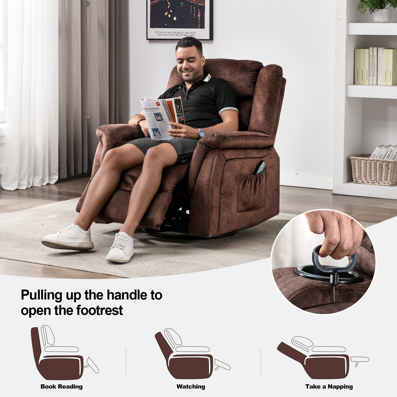 - Adjustable & Widely Used: The recliner chair can be adjusted from 90 to 160 degrees by pulling up the side handle. You can enjoy the freedom of massage at any angle, let you fully relax and enjoy your leisure time, such as reading, sleeping, watching TV, etc.It is a perfect sofa for small space!