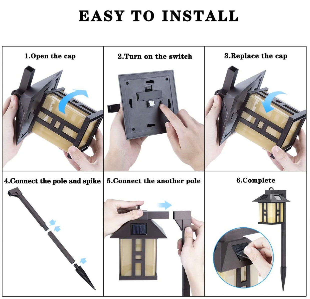 SmartYard Solar Powered Pathway Shepherd Hook Lights Asian Style (4 Pack)