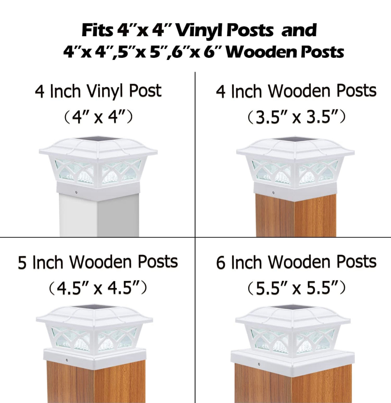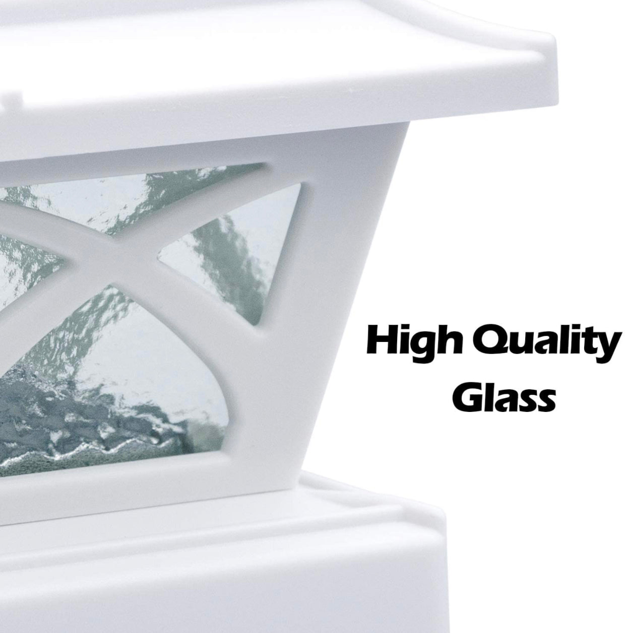 Solar Post Cap Lights Outdoor Glass 2 Modes 8 LEDs for 4x4 5x5 6x6 Posts Fence Deck Patio Decoration Warm White/Cool White (2 Pack)